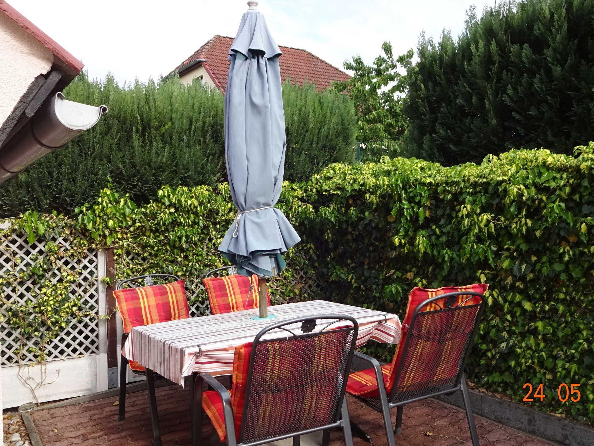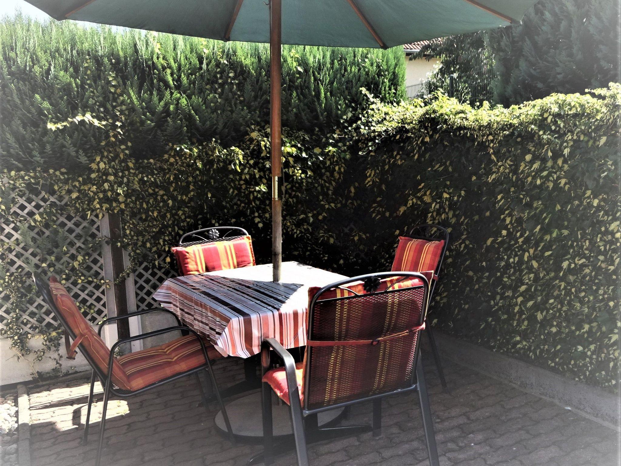 • 1 Terrasse mit Sicht-und Sonnenschutz, Gartenmöbeln und Grill