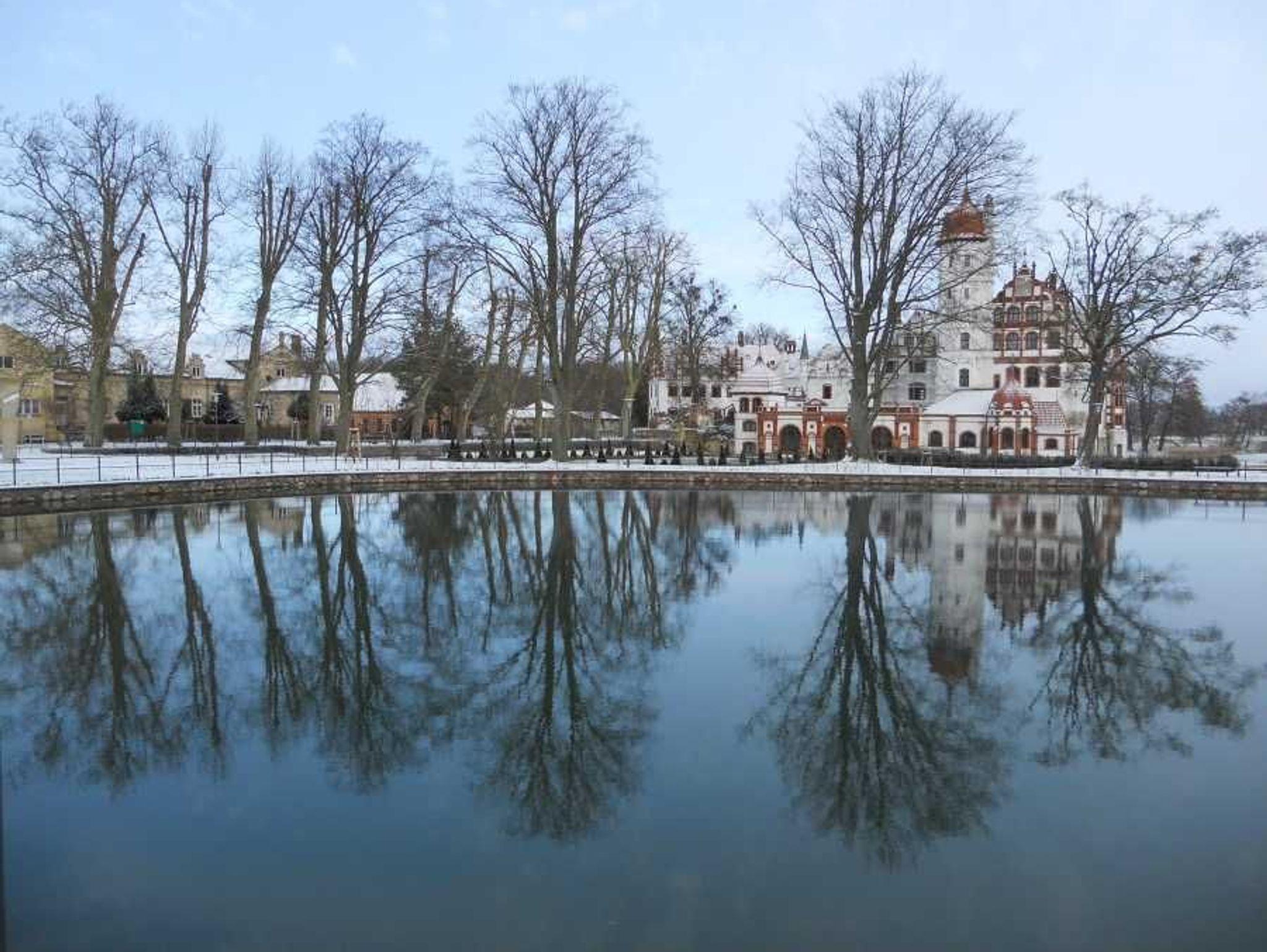 Der gepflegte Dorfkern mit dem berühmten Schloss, Lenné-Park, Teich und der alten Dorfanlage steht unter Denkmalschutz.