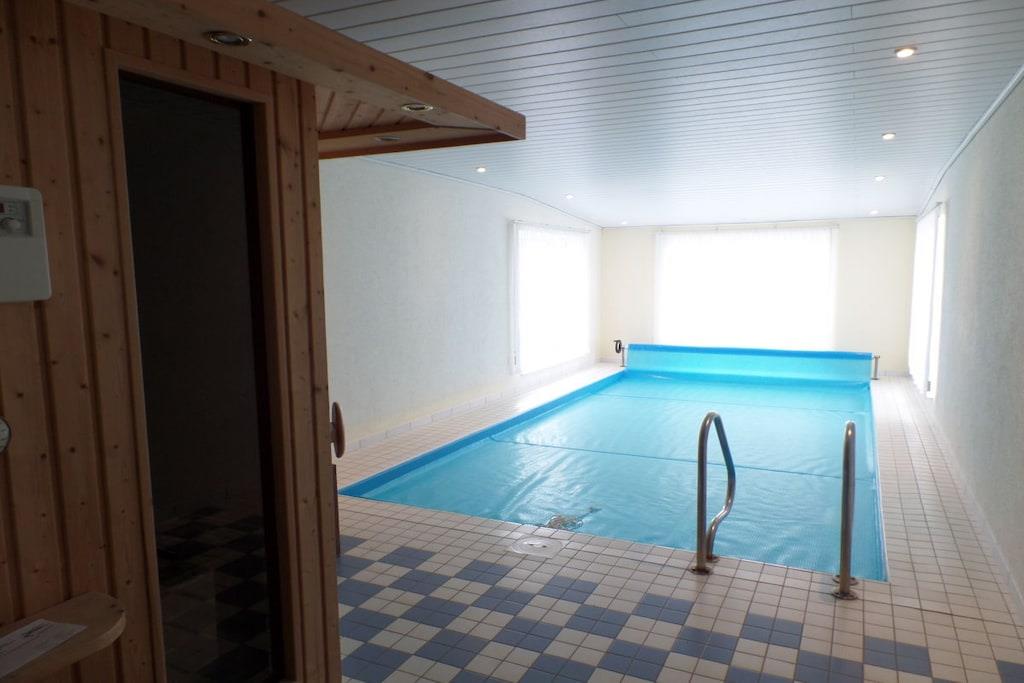 Ankom, slap af og føl dig hjemme! Hvis du ønsker at undslippe hverdagens stress, er du kommet til det rette sted. Nyd din ferie i vores hus med indendørs pool og sauna, uanset om du rejser som par, med venner, dine børn eller bedsteforældre. Du vil føle dig godt tilpas her uanset vejret. Poolen og saunaen tilbyder perfekt afslapning, eller du kan slappe af med en god bog i en strandstol i vores have. Der er en sandkasse og en gynge til børnene. Vores hus grænser op til et naturreservat og ligger væk fra hovedvejen, så du vågner op til fuglesang, ikke trafikstøj. Men Kühlungsborns travlhed ligger kun 3 km væk.