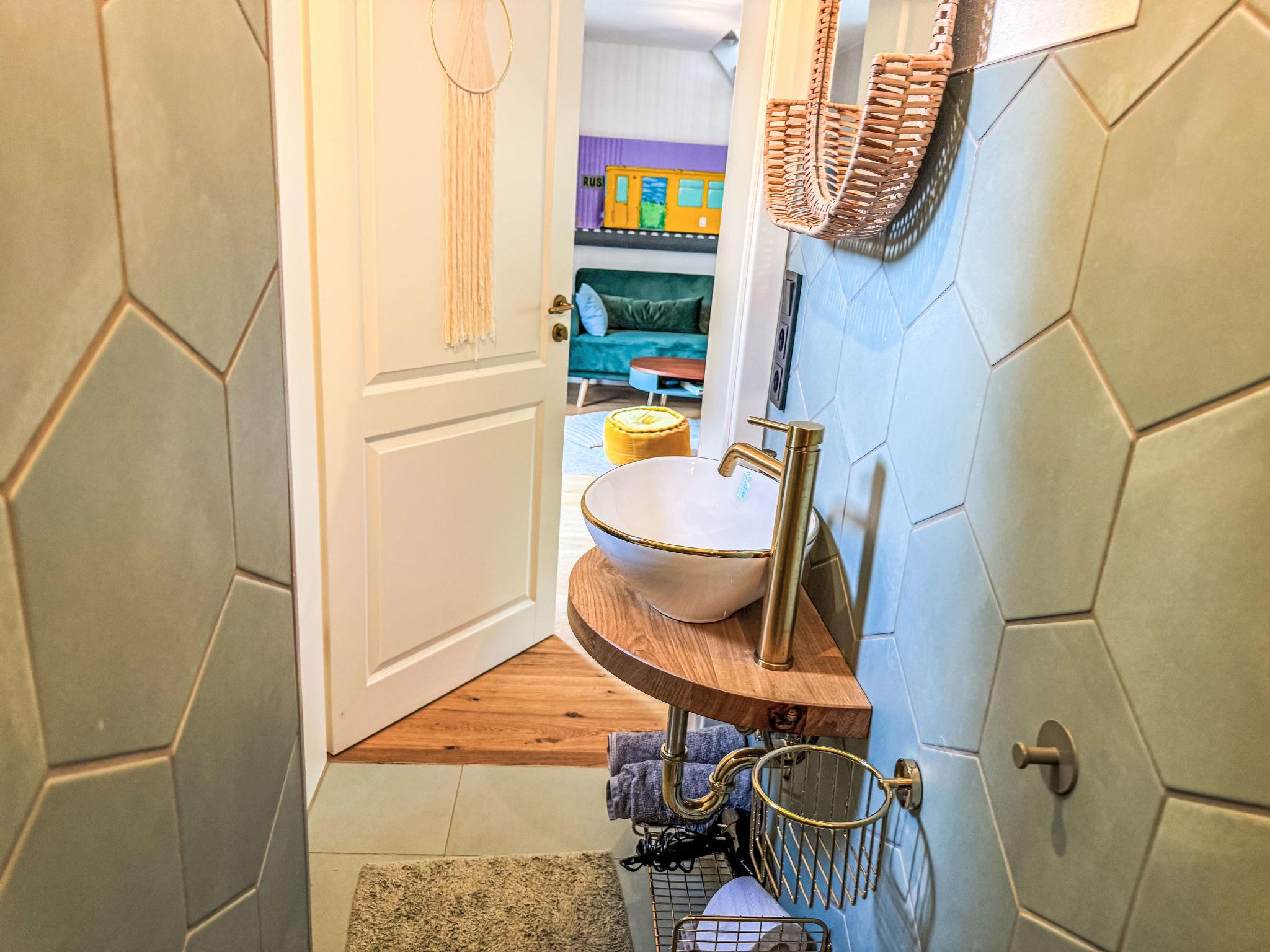 "Hinterhov Koje", 2-room maisonette 25 m2 on 2 levels. Beautiful furnishings: living/dining room with dining table. Exit to the terrace. Kitchenette (2 induction hot plates, electric coffee machine) with kitchen corner. Shower/WC. Upper floor: open gallery with 2 double beds (160 cm, length 200 cm). Heating. Terrace 12 m2. Terrace furniture. Facilities: children's high chair, baby cot. Internet (WiFi, free). Parking (1 car) at 30 m. Please note: non-smokers only. Private entrance, smoke alarm.