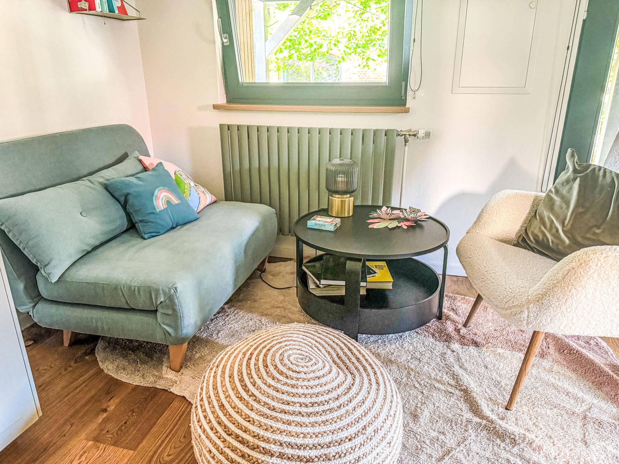 "Hinterhov Nest", 2-room apartment 23 m2, on the ground floor. Very stylish furnishings: living/dining room with dining table. Exit to the terrace. Open living/sleeping room with 1 double bed (160 cm, length 200 cm). Kitchenette (2 induction hot plates, kettle, electric coffee machine). Shower/WC. Heating. Terrace 12 m2. Terrace furniture. Facilities: hair dryer. Internet (WiFi, free). Parking (1 car) at 30 m. Please note: non-smokers only.