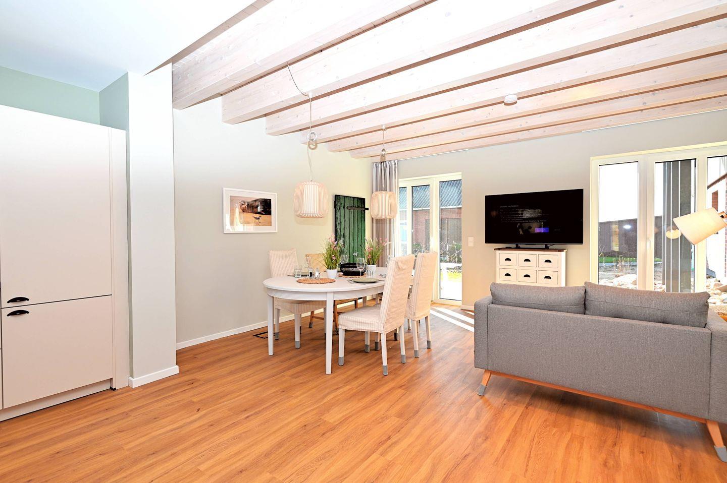 Moderne, familienfreundliche Nichtraucher-Unterkunft für bis zu 4 Personen mit 3 Zimmern, 2 Schlafzimmern, 1 Bad mit bodengleicher Dusche und zusätzlichem Gäste-WC. Offene Küche zum Wohnzimmer mit Spülmaschine, Backofen und Waschmaschine. WLAN, TV, Fußbodenheizung sowie kostenloser Privatparkplatz vorhanden. Garten mit Gartenmöbeln und Sandkasten, strandnah gelegen: der Sandstrand ist ca. 1,2 km entfernt.