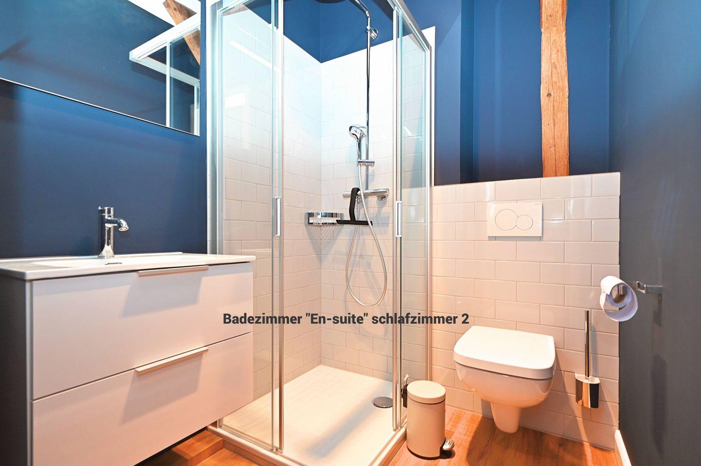 Insgesamt 3 Badezimmer mit bodengleichen Duschen, WC, Waschbecken, Spiegeln und Haartrocknern erleichtern den Tagesablauf gerade bei voller Belegung. Eine Waschmaschine zur Eigennutzung, Wäscheständer, Staubsauger, Kommode und Garderobe tragen zusätzlich zu einem alltagstauglichen Aufenthalt bei.