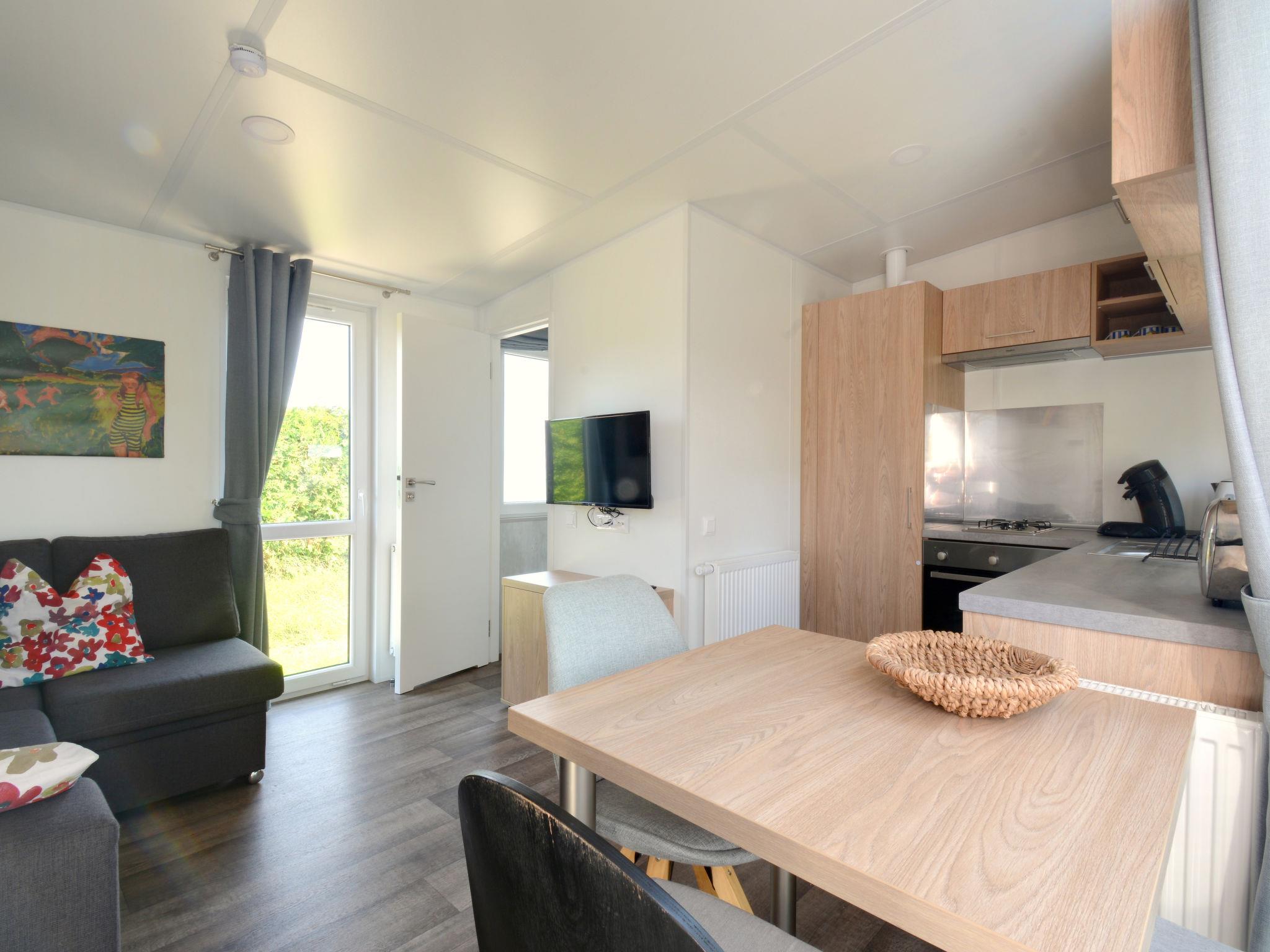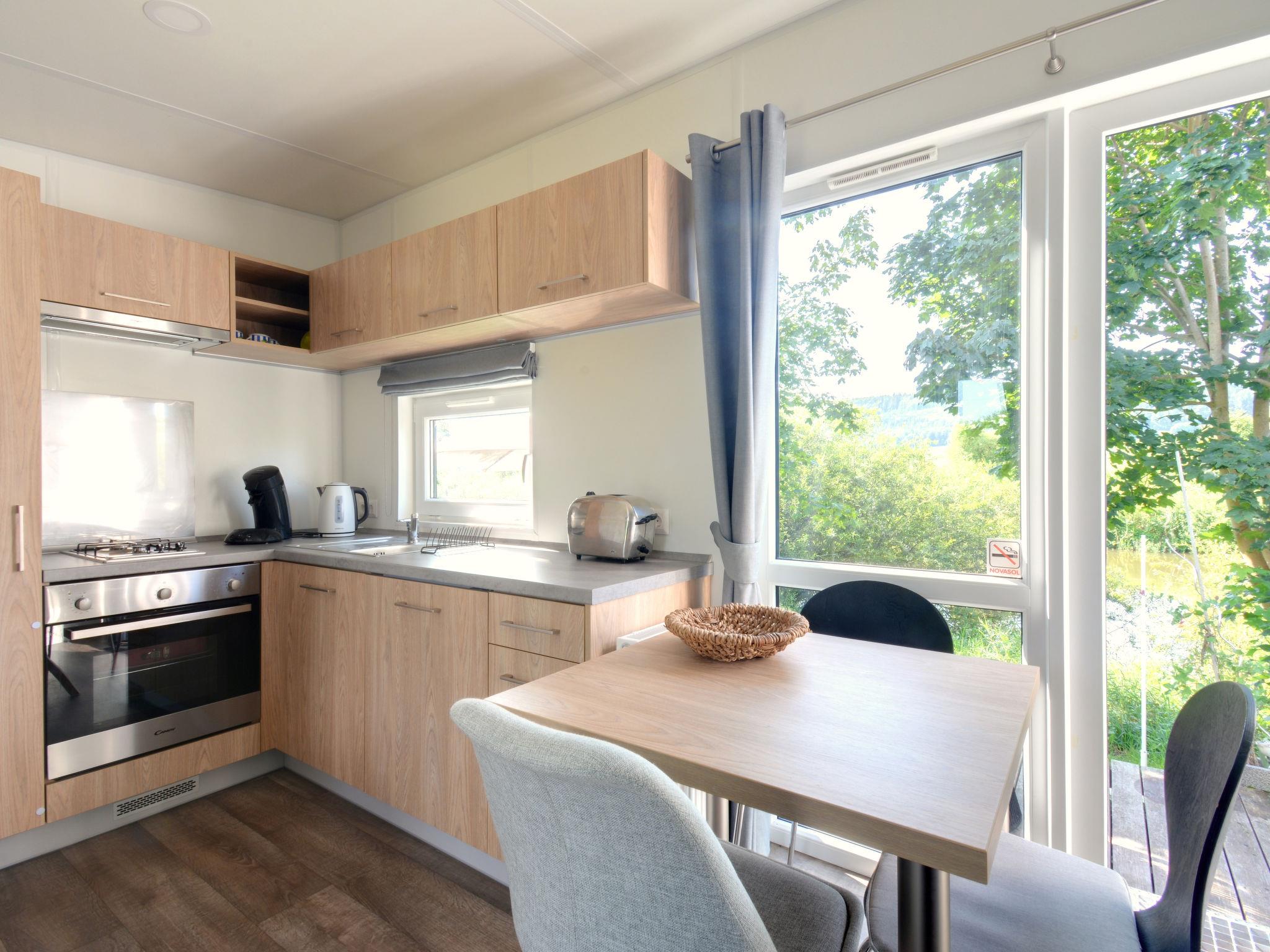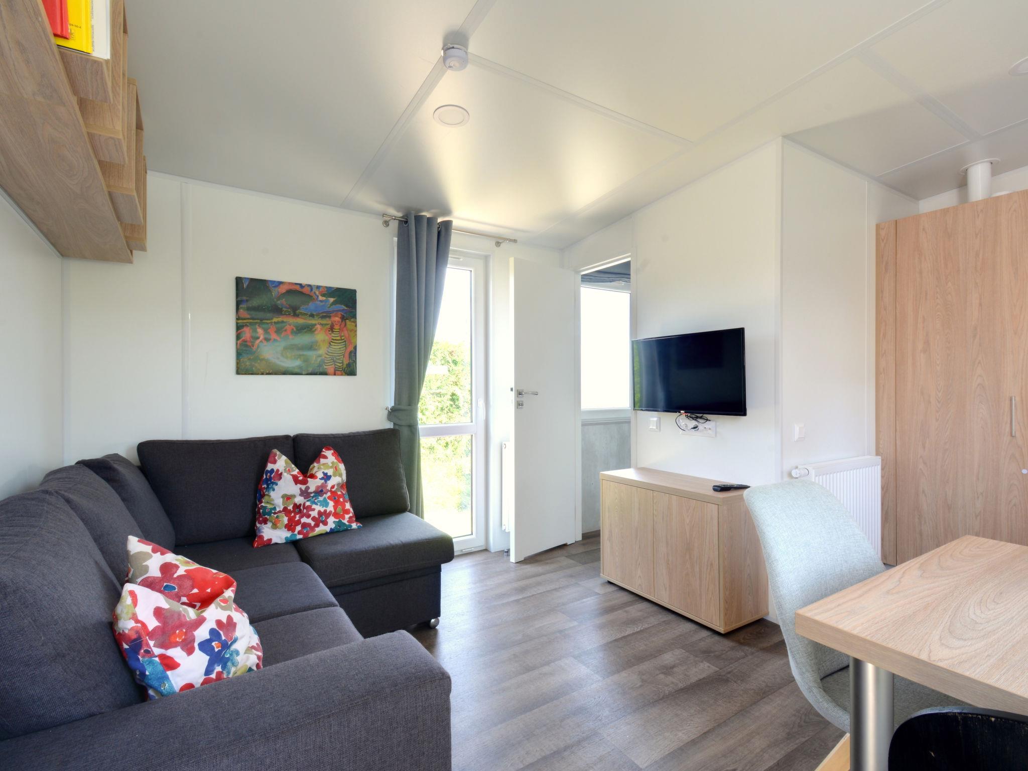 "Tiny Haus Altmühlpanorama", 2-room mobile home 25 m2. Object suitable for 2 adults + 2 children. Cosy furnishings: living/sleeping room with 1 sofabed (120 cm, length 170 cm), satellite TV. 1 room with 1 french bed (140 cm, length 200 cm). Open kitchen (oven, Gas stove, 2 gas rings, kettle, electric coffee machine). Shower/WC. Gas heating. Small terrace. Terrace furniture. Parking at 50 m. Please note: non-smoking house.