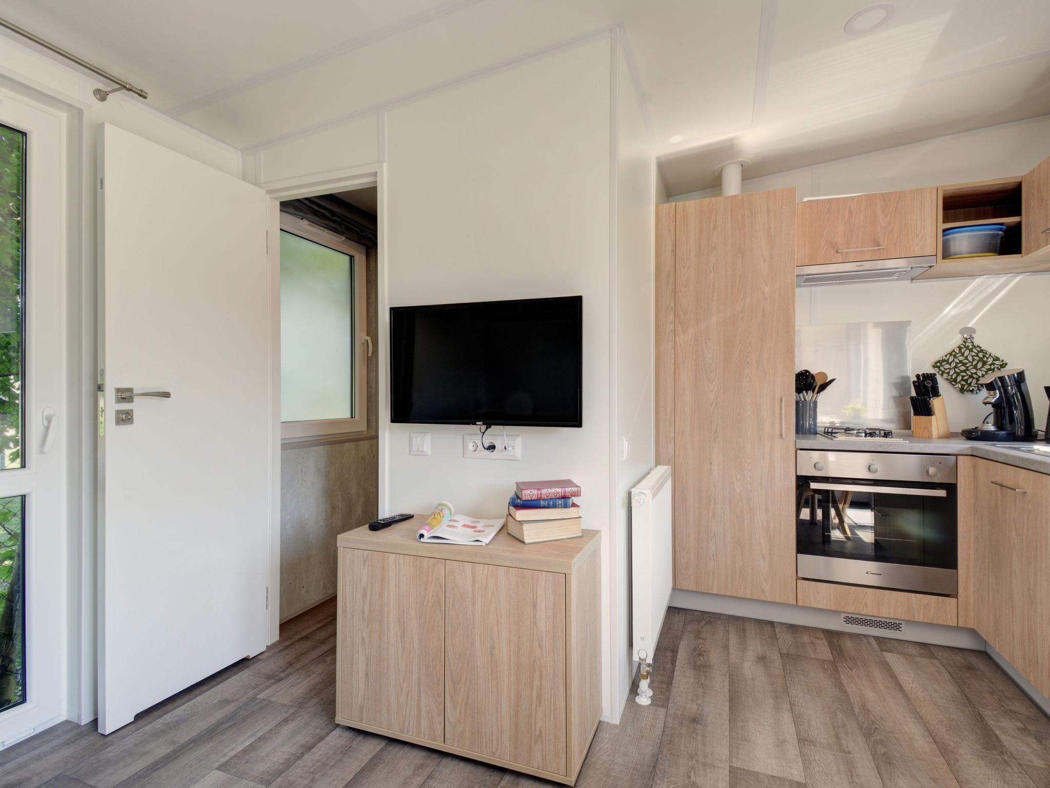 "Tiny Haus Ludwig", 2-room mobile home 25 m2. Object suitable for 2 adults + 2 children. Cosy furnishings: living/sleeping room with 1 sofabed (120 cm, length 170 cm), satellite TV. 1 room with 1 french bed (140 cm, length 200 cm). Open kitchen (oven, Gas stove, 2 gas rings, kettle, electric coffee machine). Shower/WC. Gas heating. Terrace 24 m2. Terrace furniture. Parking at 50 m. Please note: non-smoking house. Maximum 1 pet/ dog allowed.