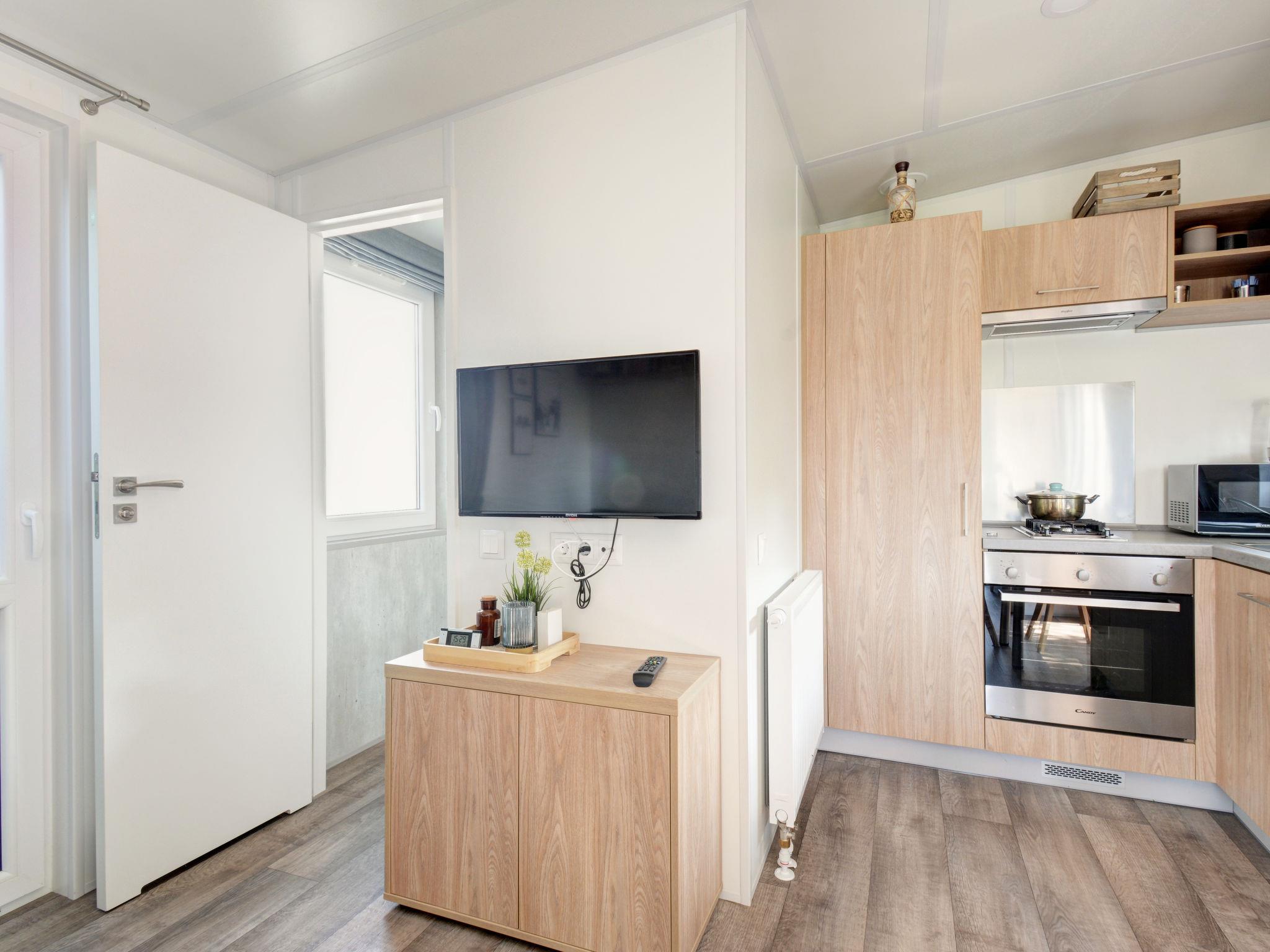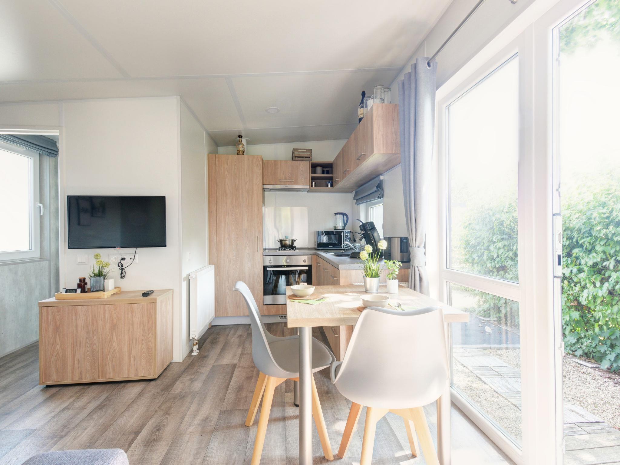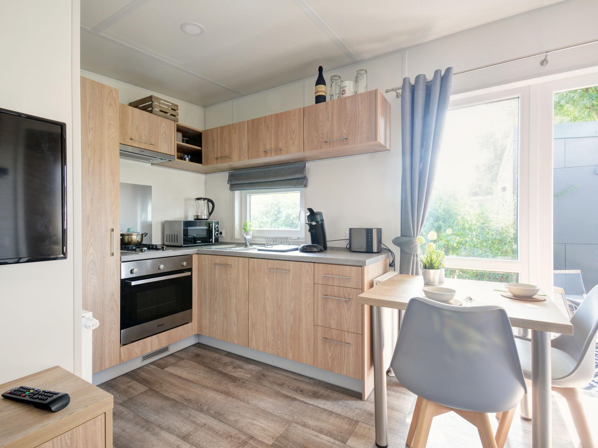 "Tiny Haus Engel", 2-room mobile home 25 m2. Object suitable for 2 adults + 2 children. Cosy furnishings: living/sleeping room with 1 sofabed (120 cm, length 170 cm), satellite TV. 1 room with 1 french bed (140 cm, length 200 cm). Open kitchen (oven, Gas stove, 2 gas rings, kettle, electric coffee machine). Shower/WC. Gas heating. Small terrace. Terrace furniture. Parking at 50 m. Please note: non-smoking house.