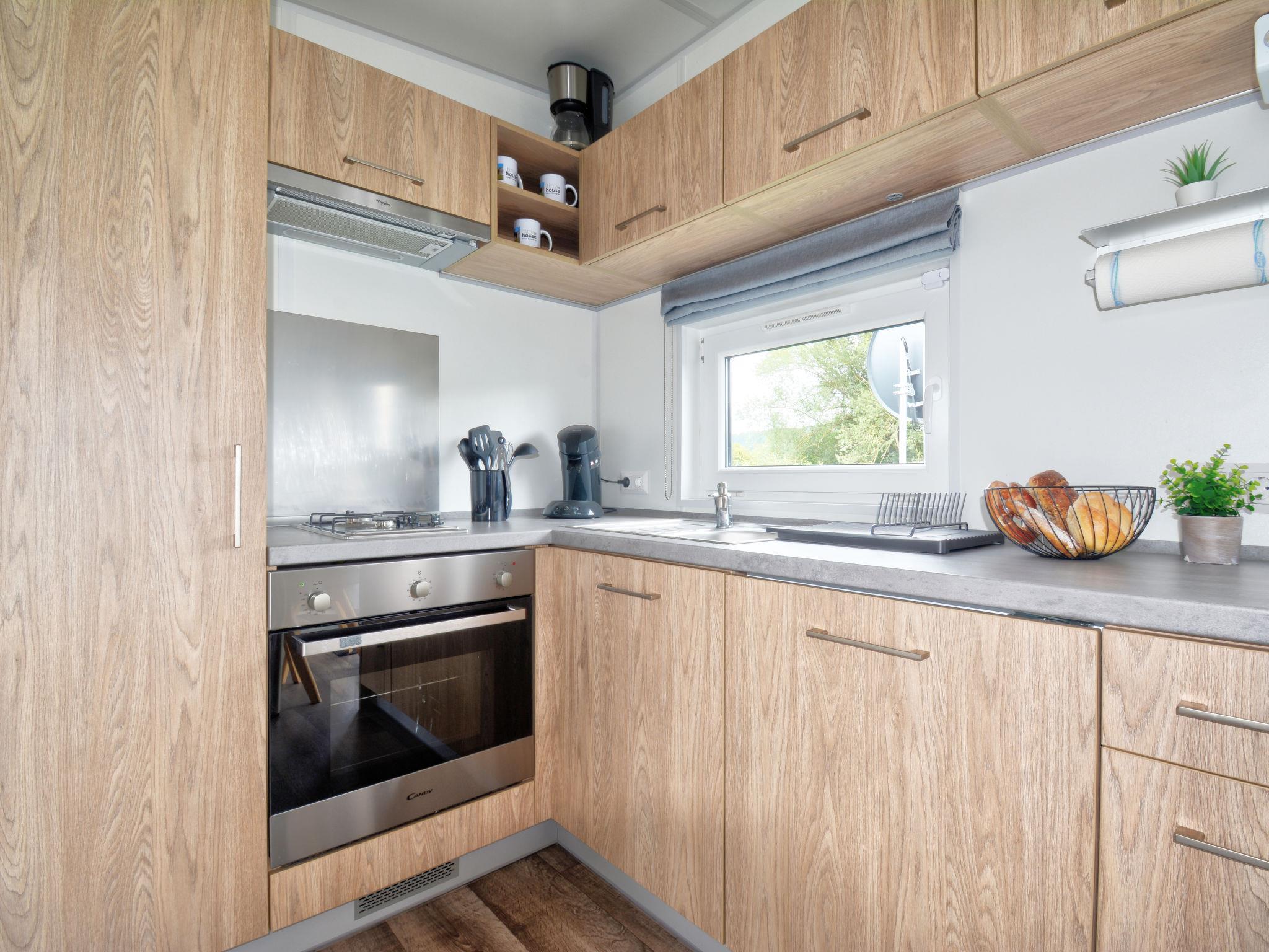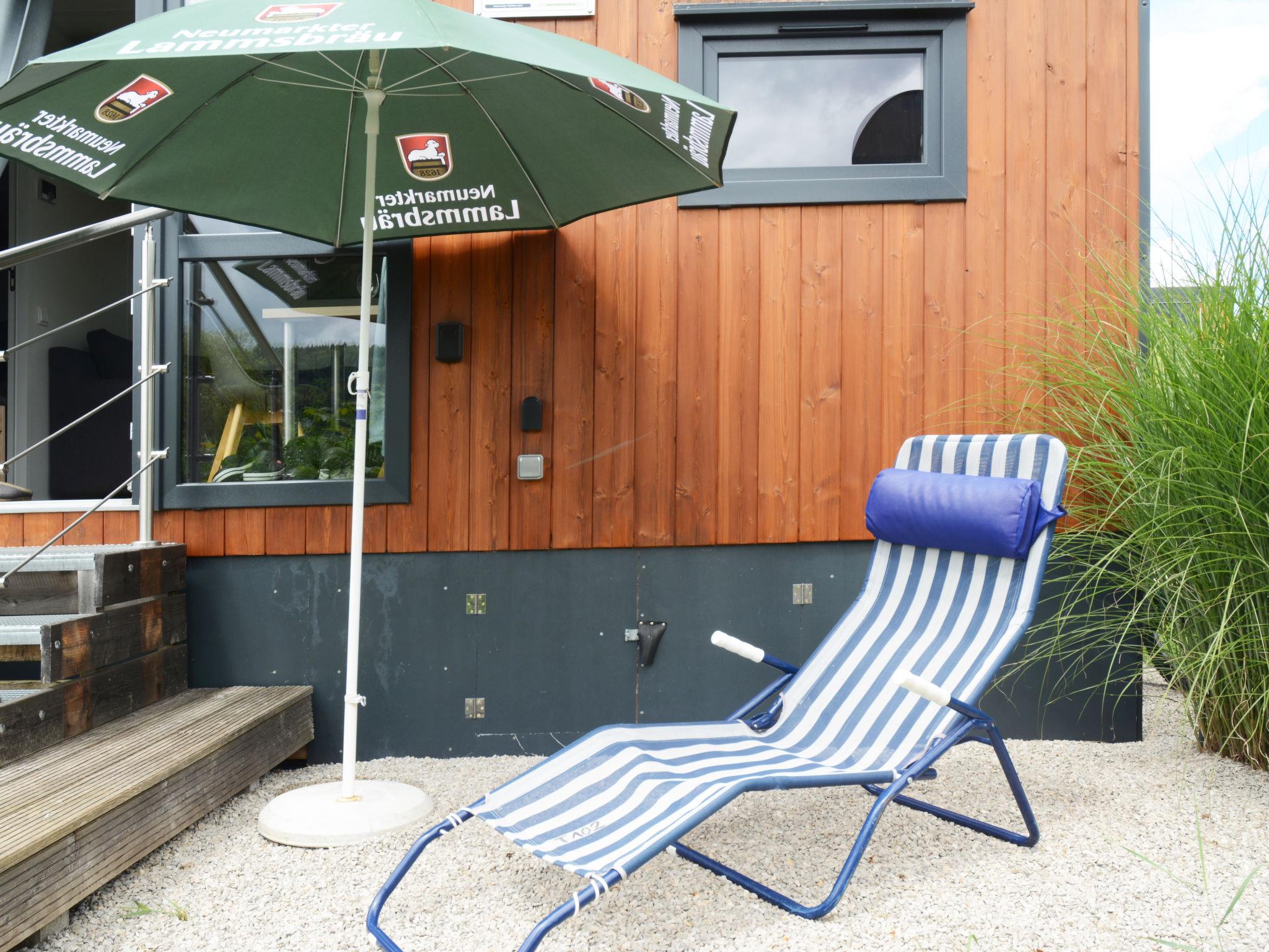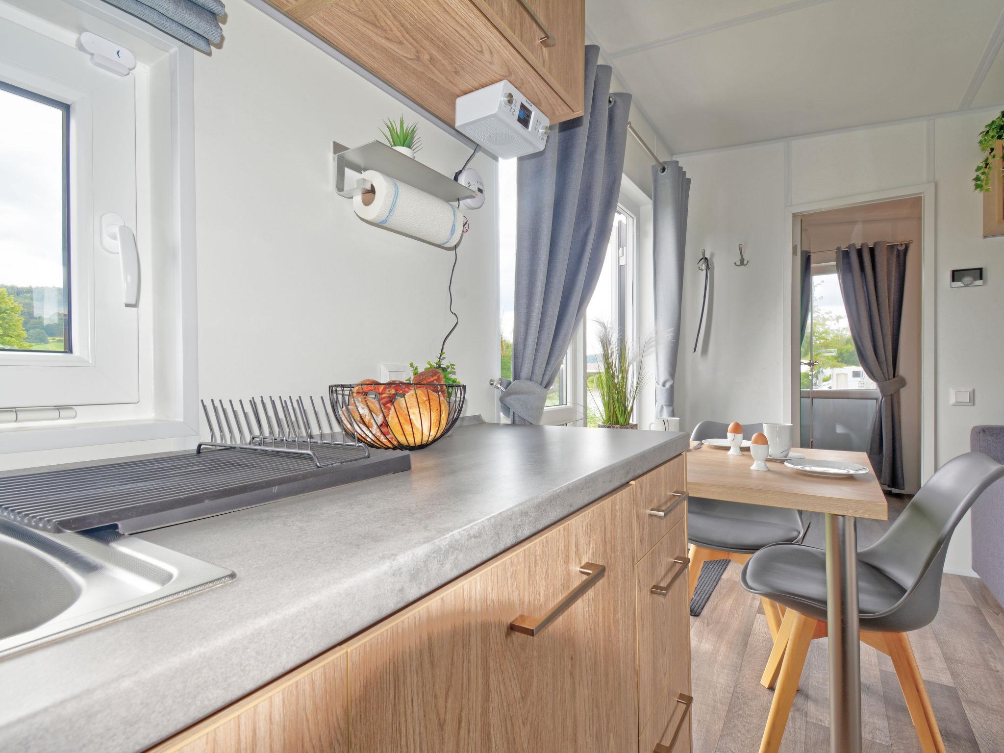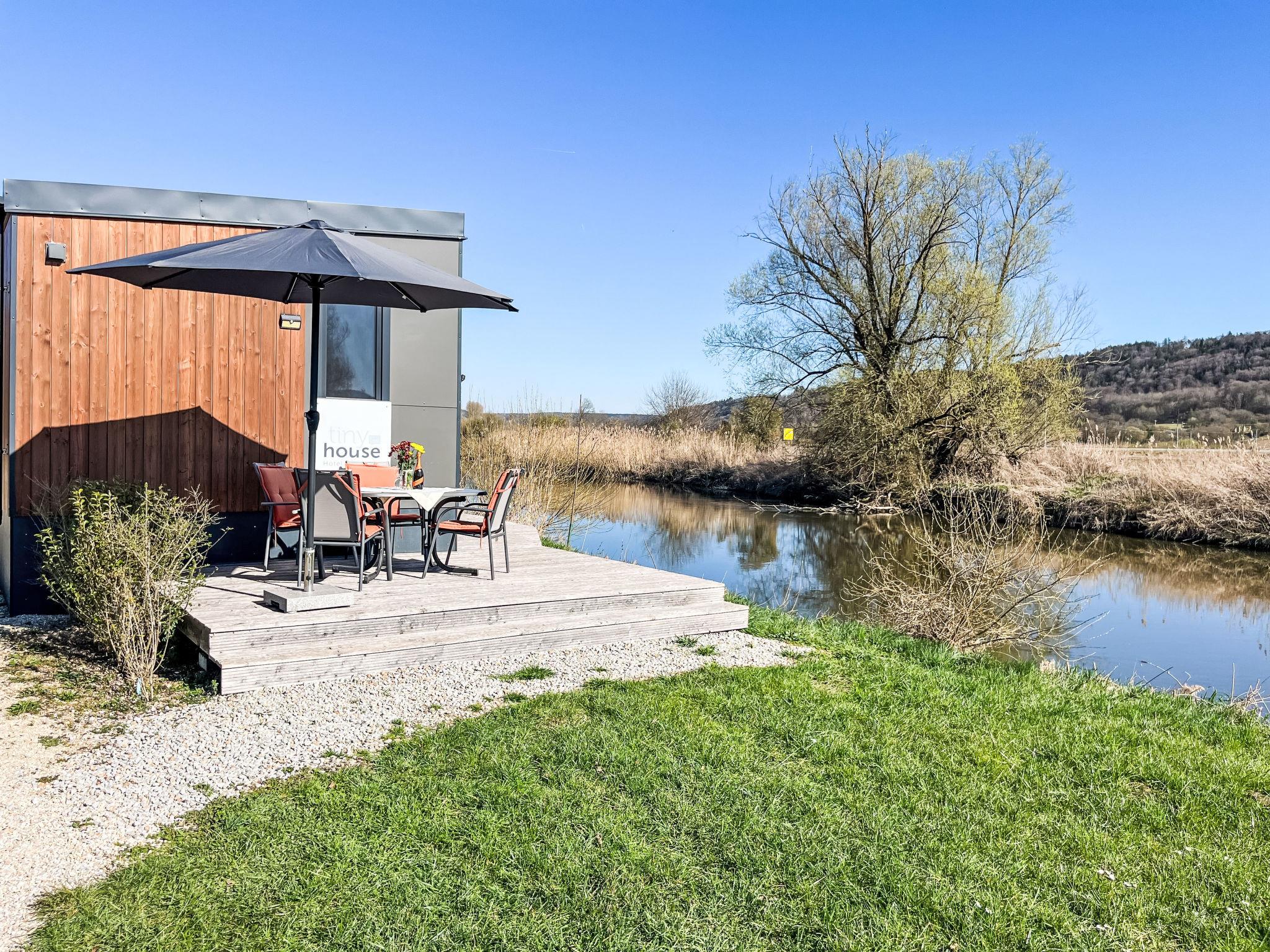 "Tiny Haus Lieblingsplatz", 2-room mobile home 25 m2. Object suitable for 2 adults + 2 children. Cosy furnishings: living/sleeping room with 1 sofabed (120 cm, length 170 cm), satellite TV. 1 room with 1 french bed (140 cm, length 200 cm). Open kitchen (oven, Gas stove, 2 gas rings, kettle, electric coffee machine). Shower/WC. Gas heating. 2 terraces. Terrace furniture. Parking at 50 m. Please note: non-smoking house.