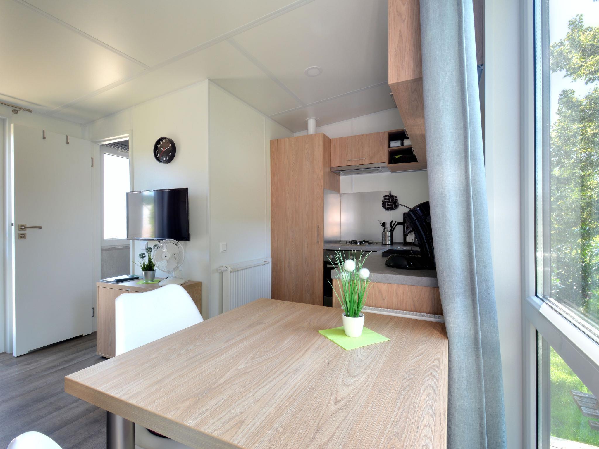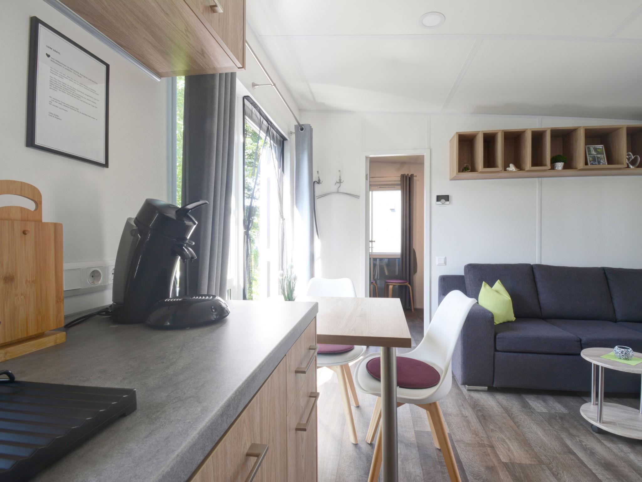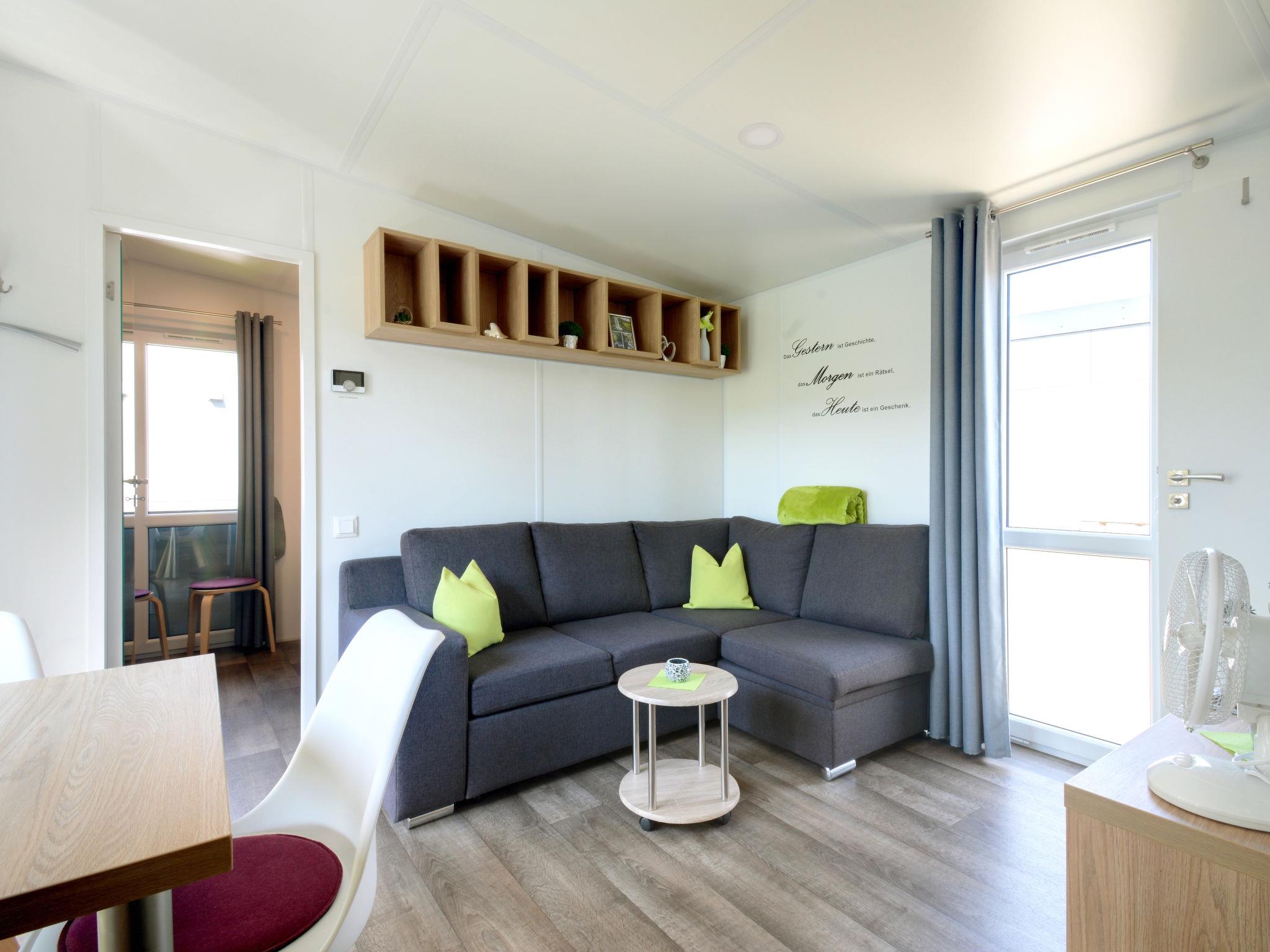 "Tiny Haus Angelika", 2-room mobile home 25 m2. Object suitable for 2 adults + 2 children. Cosy furnishings: living/sleeping room with 1 sofabed (120 cm, length 170 cm), satellite TV. Exit to the terrace. 1 room with 1 french bed (140 cm, length 200 cm). Open kitchen (oven, Gas stove, 2 gas rings, kettle, electric coffee machine). Shower/WC. Gas heating. Terrace. Terrace furniture. Parking (1 car) at the house. Please note: non-smoking house. Smoke alarm.