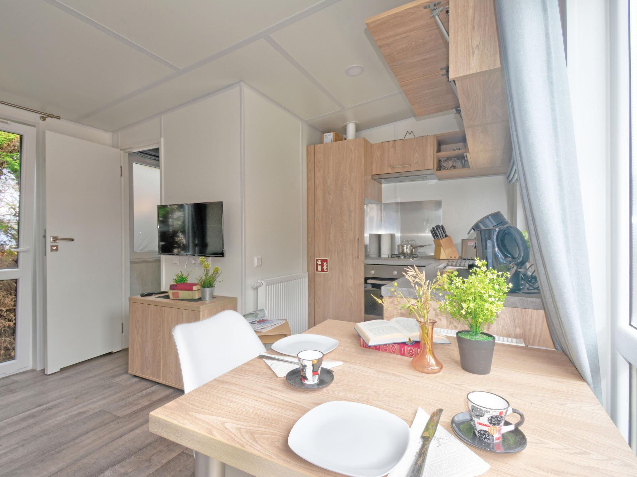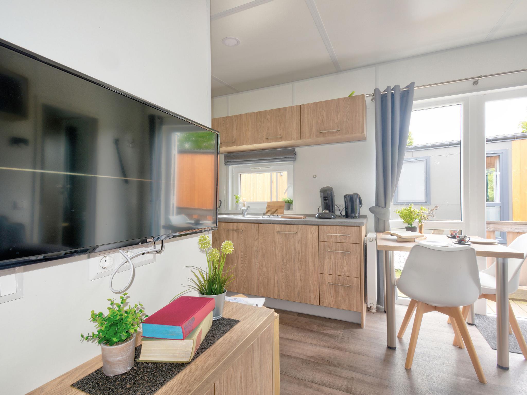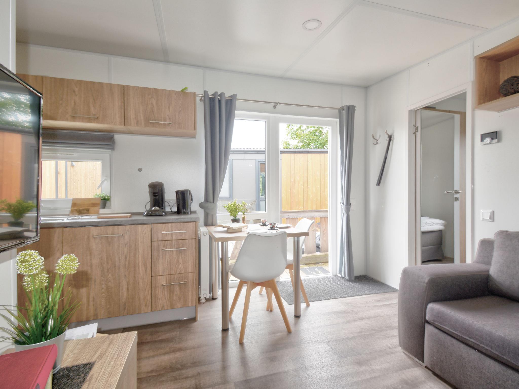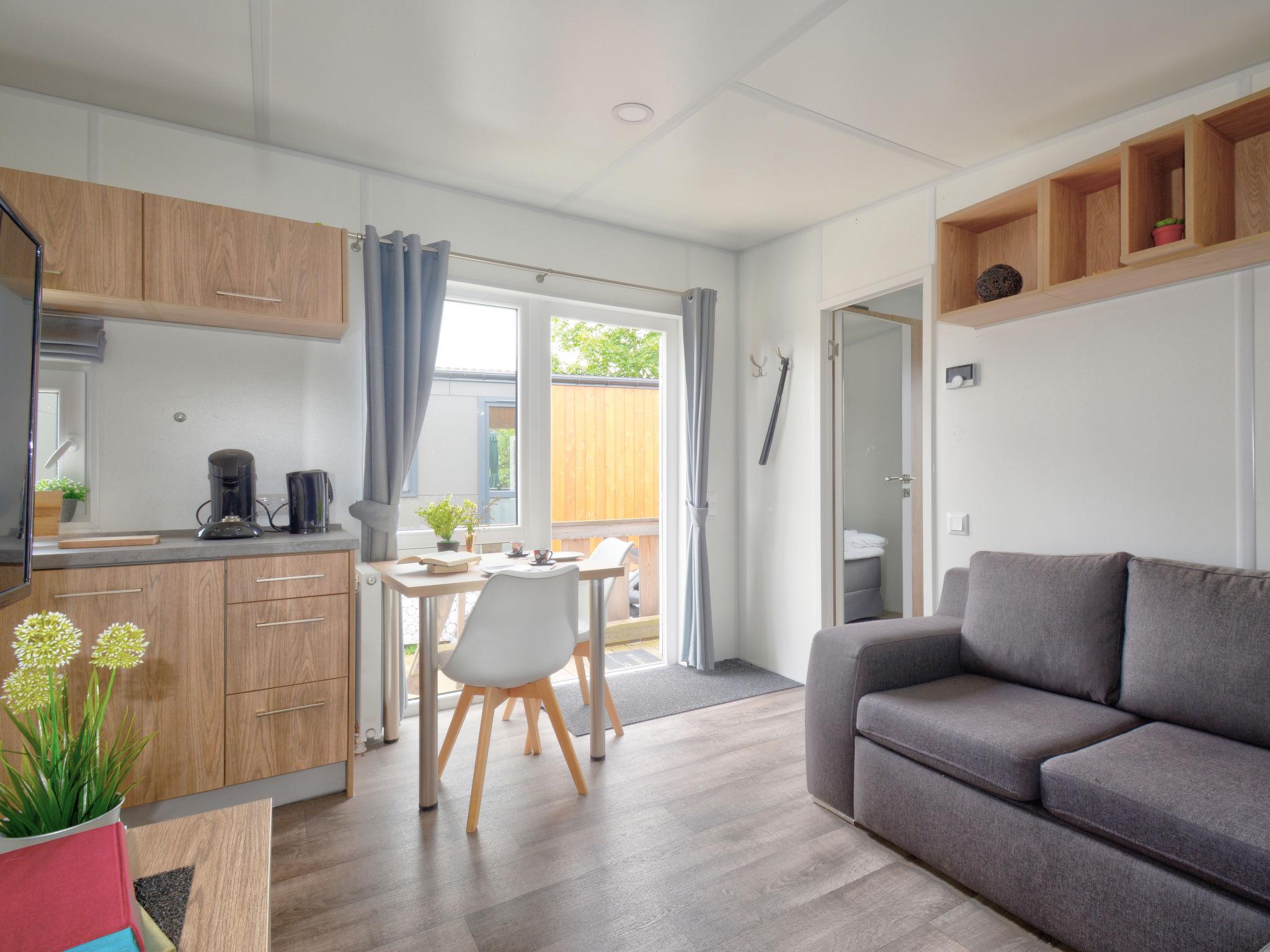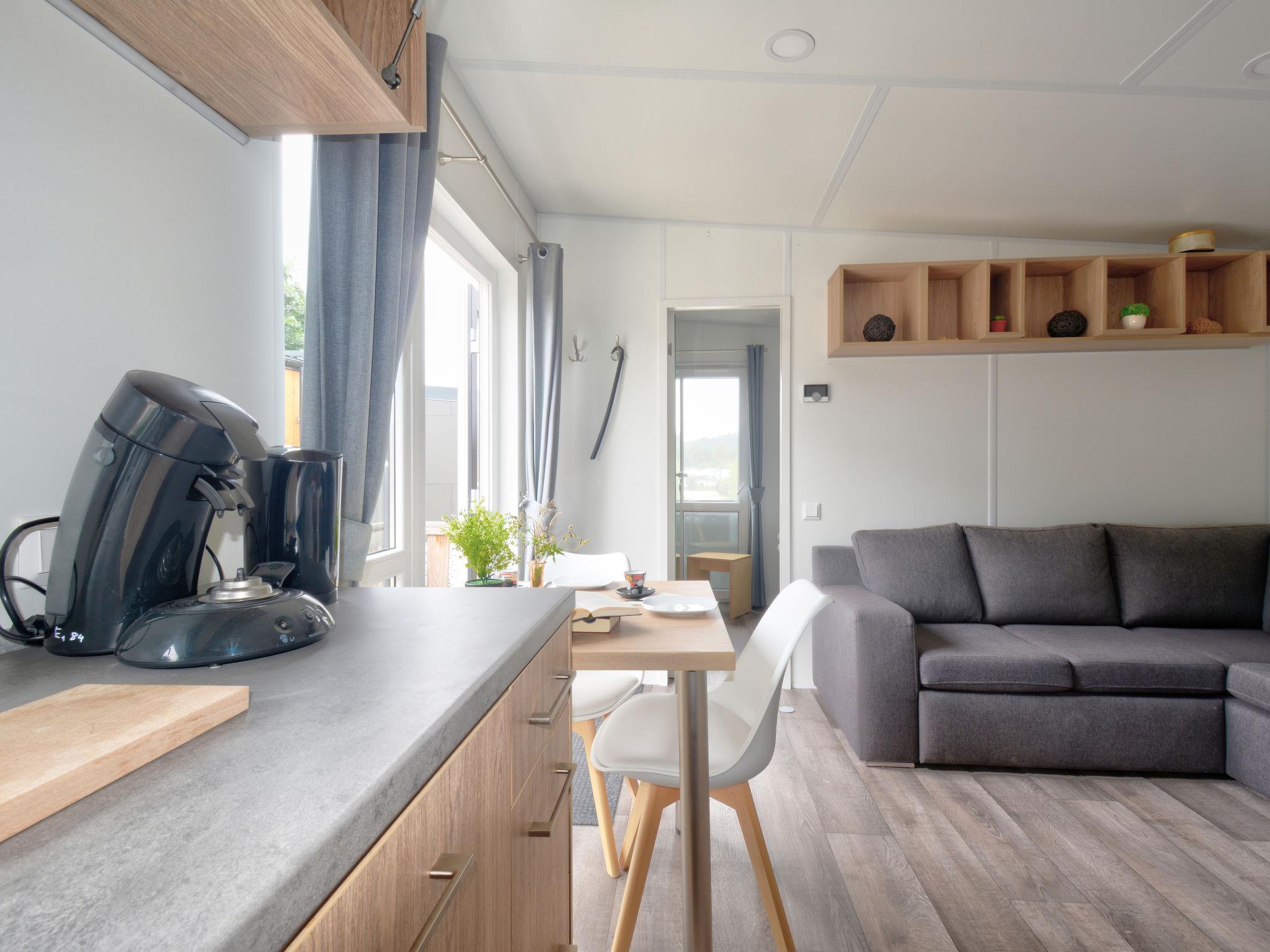 "Tiny Haus Martina", 2-room mobile home 25 m2. Object suitable for 2 adults + 2 children. Cosy furnishings: living/sleeping room with 1 sofabed (120 cm, length 170 cm), satellite TV. 1 room with 1 french bed (140 cm, length 200 cm). Open kitchen (oven, Gas stove, 2 gas rings, kettle, electric coffee machine). Shower/WC. Gas heating. Small terrace. Terrace furniture. Parking at 50 m. Please note: non-smoking house. Maximum 1 pet/ dog allowed.