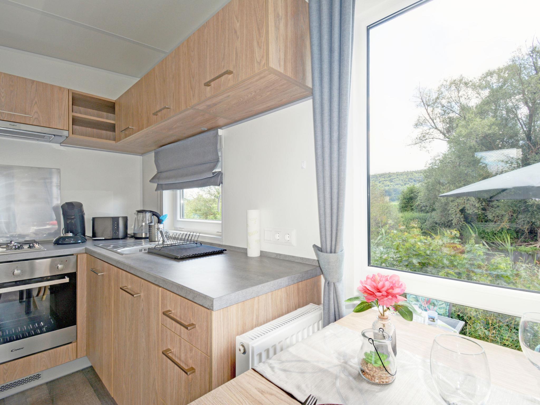 "Tiny Haus Altmühlblick", 2-room mobile home 25 m2. Object suitable for 2 adults + 2 children. Cosy furnishings: living/sleeping room with 1 sofabed (120 cm, length 170 cm), satellite TV. 1 room with 1 french bed (140 cm, length 200 cm). Open kitchen (oven, Gas stove, 2 gas rings, kettle, electric coffee machine). Shower/WC. Gas heating. Small terrace. Terrace furniture. Parking at 50 m. Please note: non-smoking house.