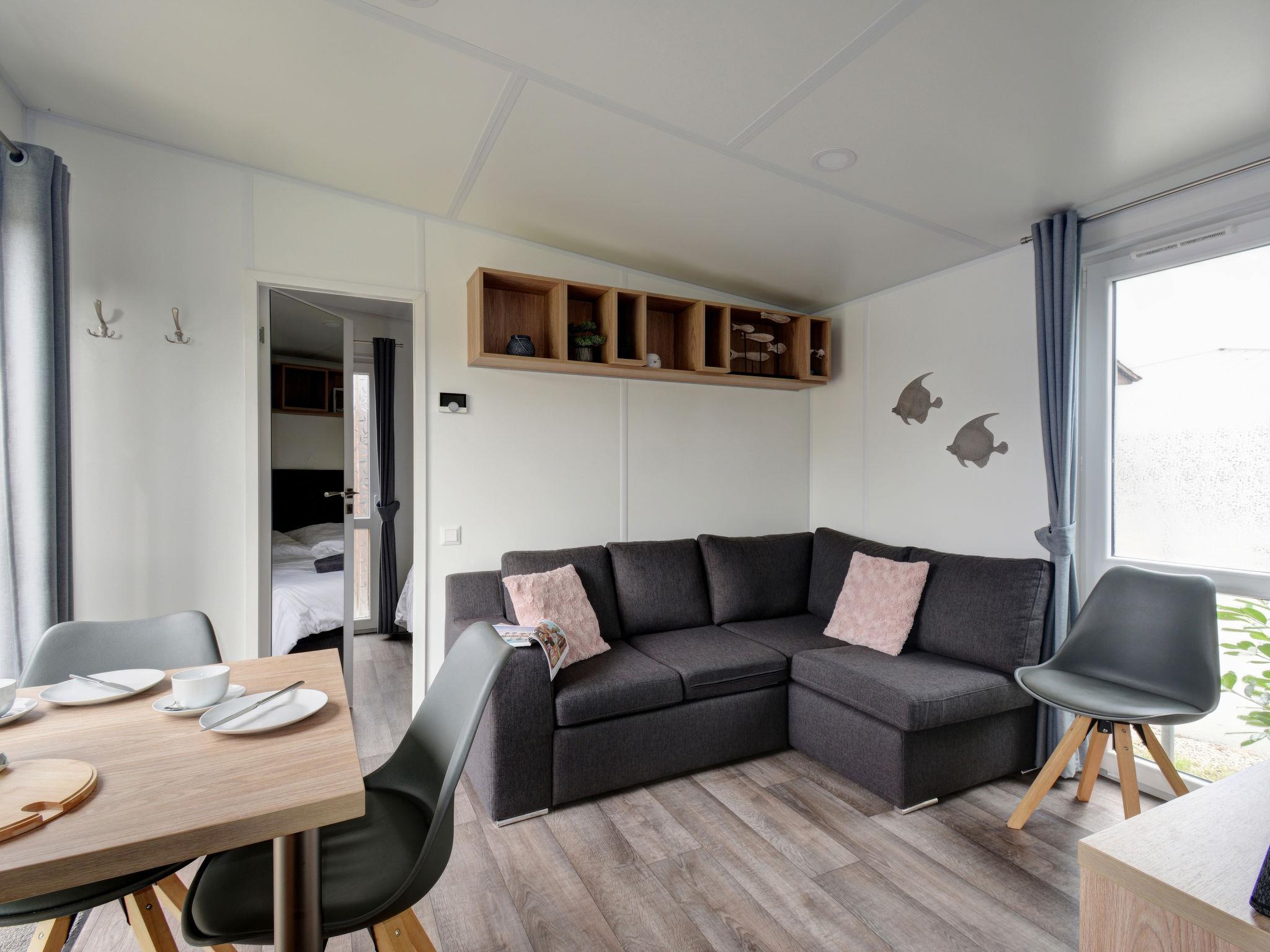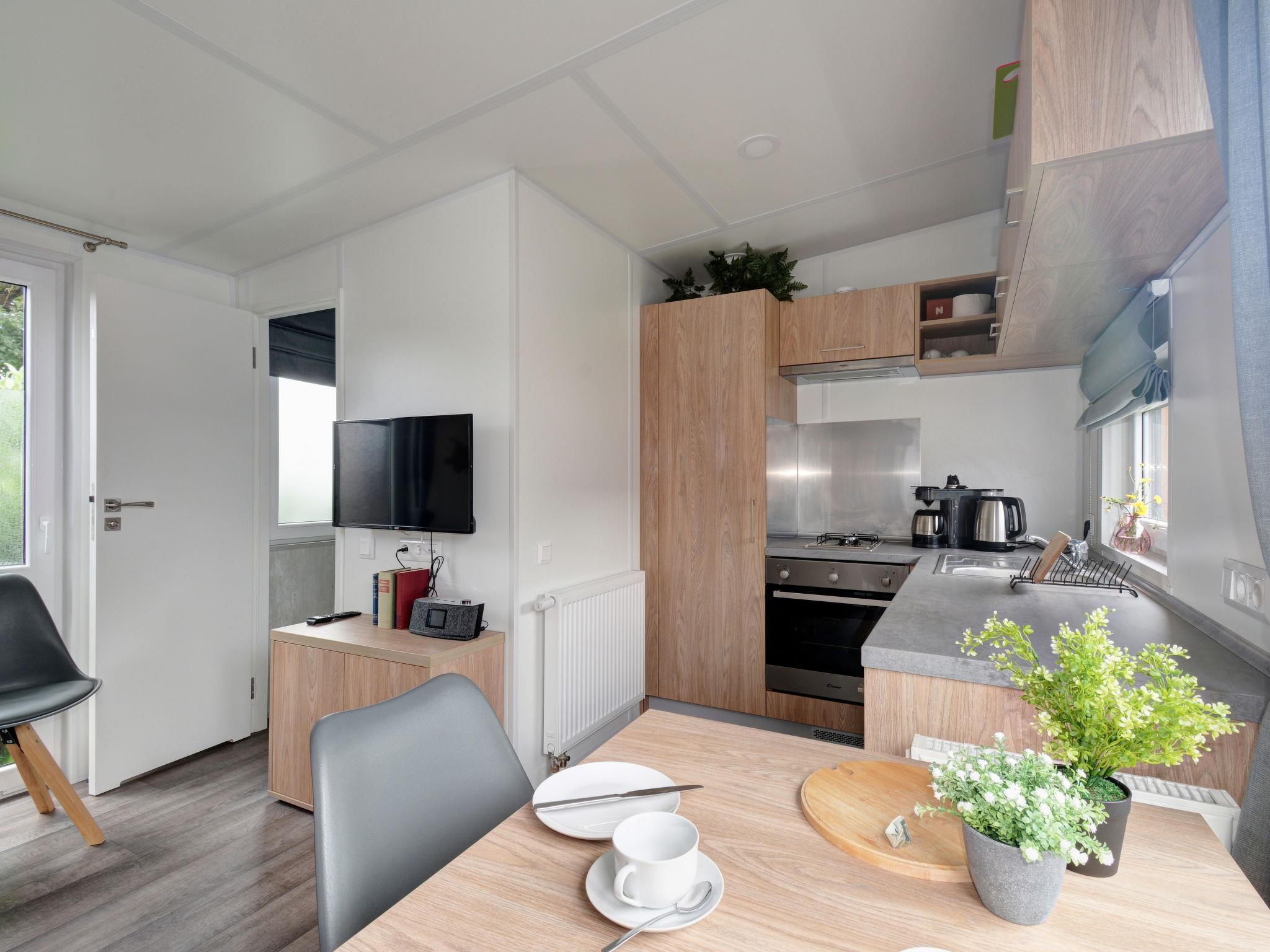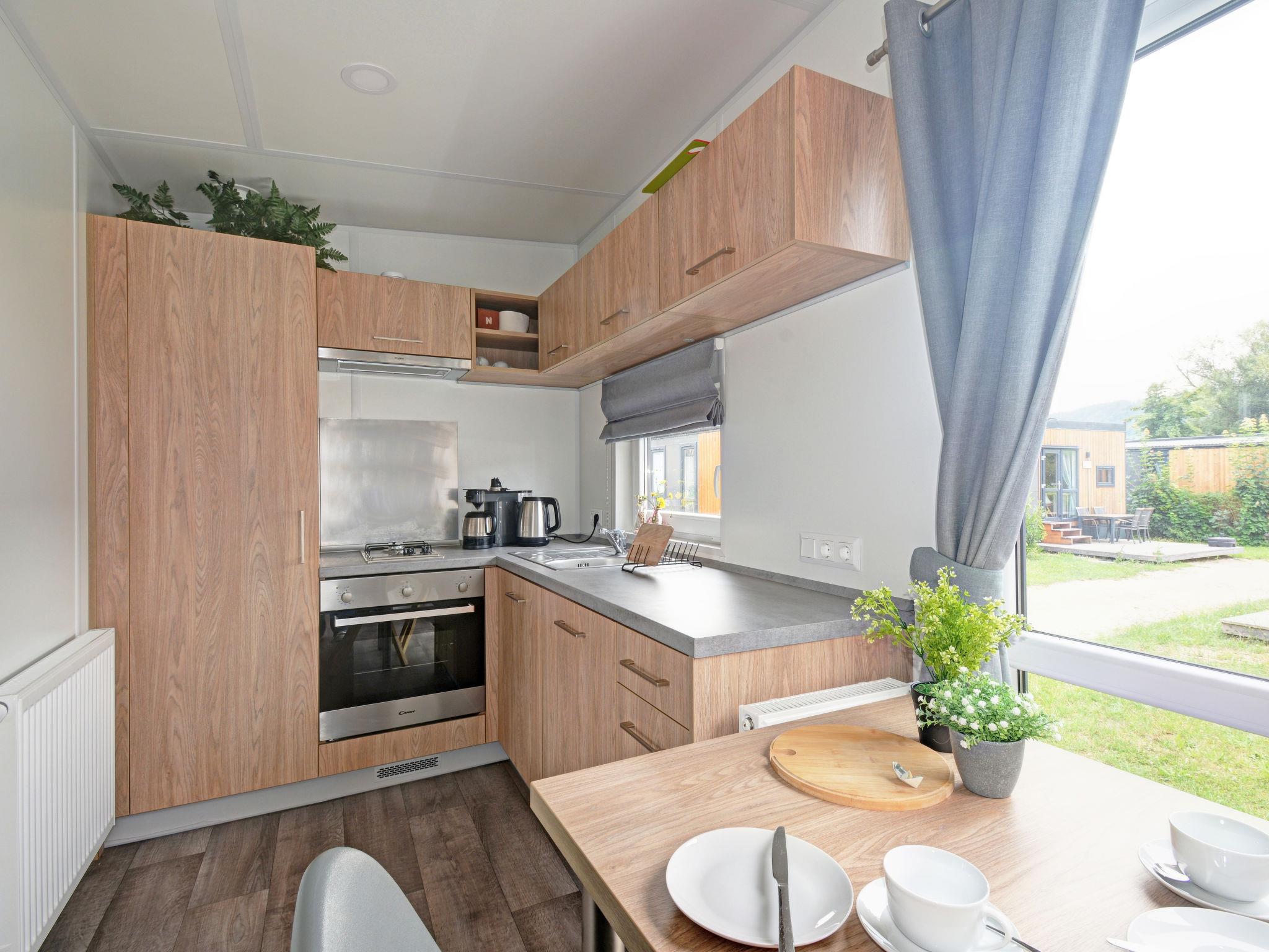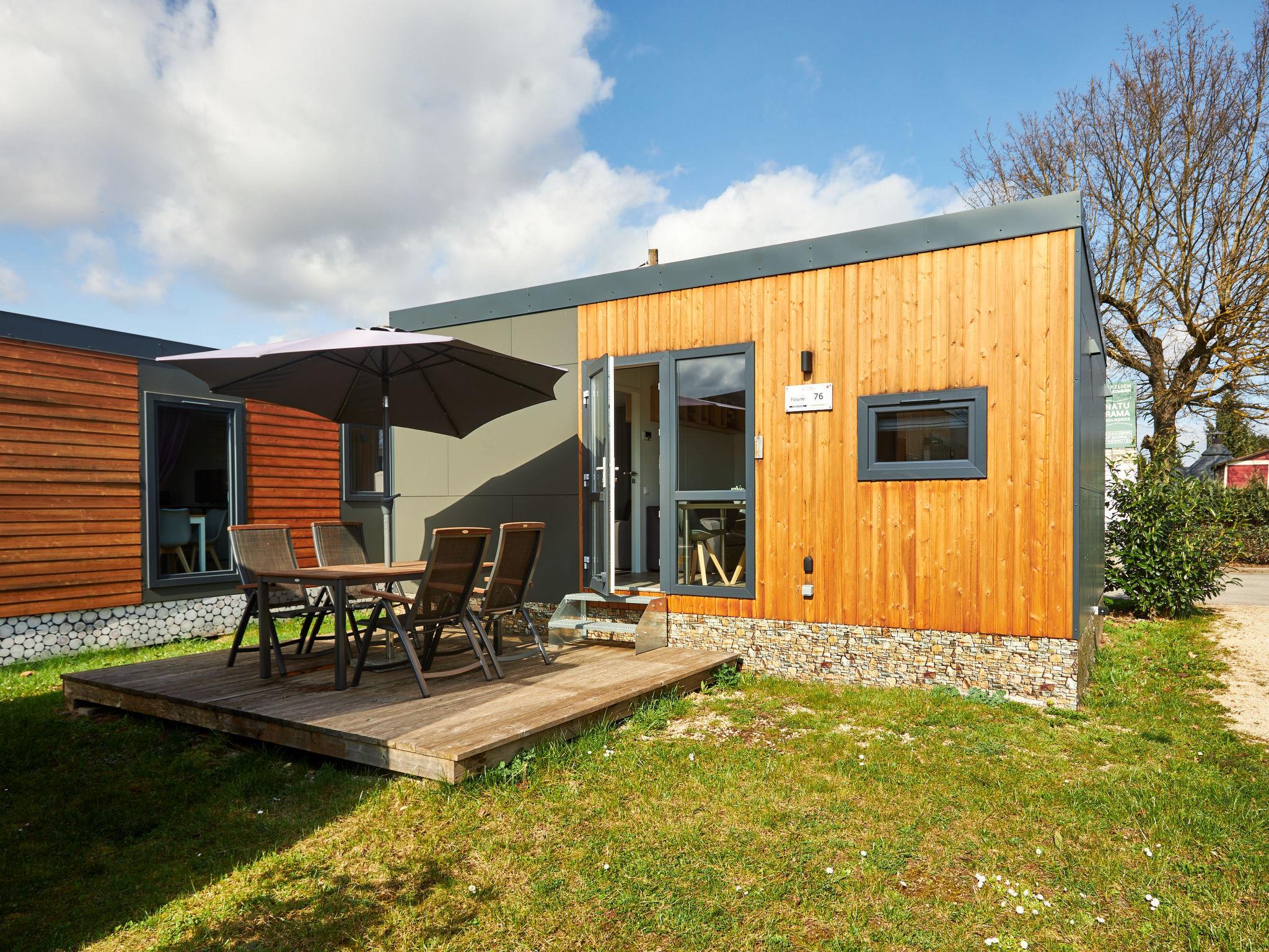 "Tiny Haus Central", 2-room mobile home 25 m2. Object suitable for 2 adults + 2 children. Cosy furnishings: living/sleeping room with 1 sofabed (120 cm, length 170 cm), satellite TV. 1 room with 1 french bed (140 cm, length 200 cm). Open kitchen (oven, Gas stove, 2 gas rings, kettle, electric coffee machine). Shower/WC. Gas heating. Small terrace. Terrace furniture. Parking at 50 m. Please note: non-smoking house.