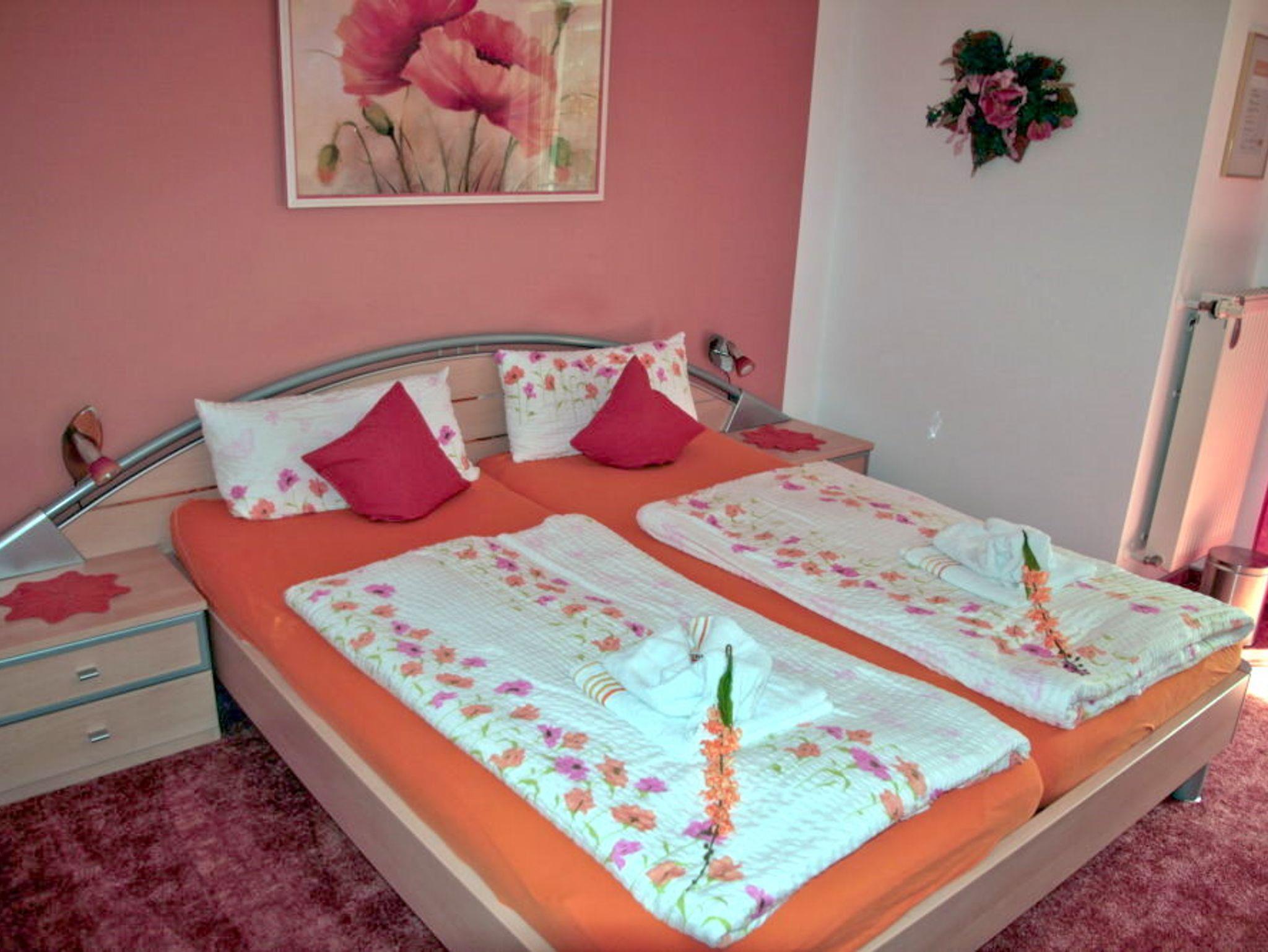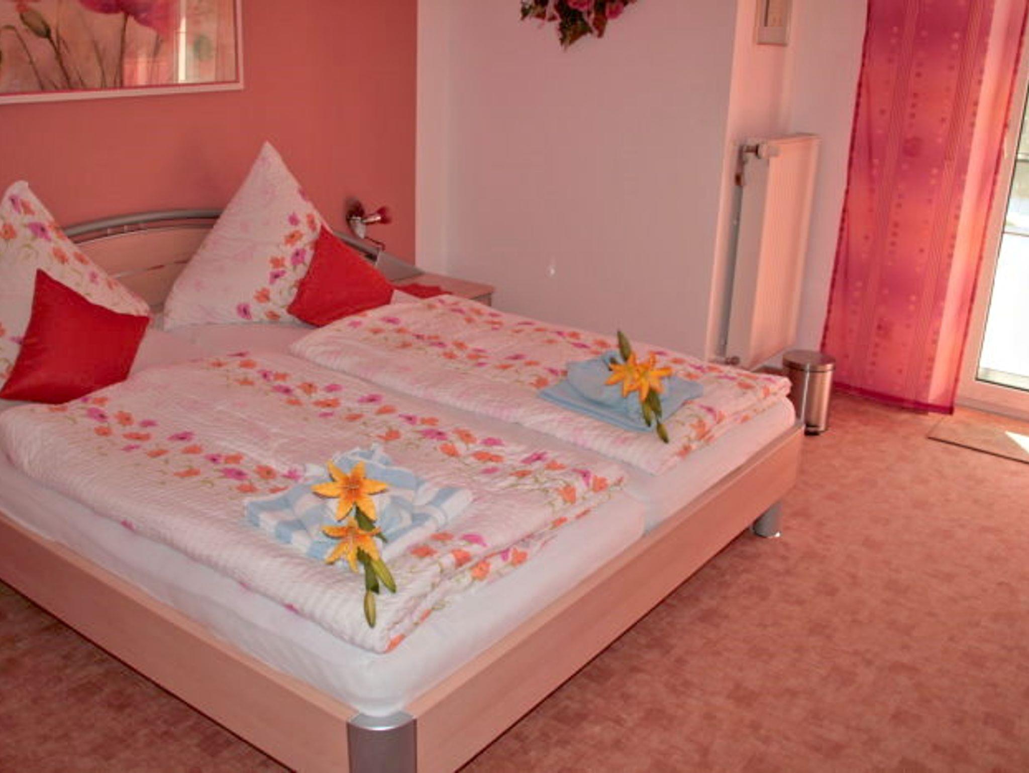 tägl. Brötchenservice oder mit Frühstück, Fahrrad- und Schlauchbootverleih, Sat-TV (Flat-Screen), Du/WC, Wintergarten als Frühstücks- bzw. Aufenthaltsraum; Exklusive FeWo mit SZ, WZ mit Schlafcouch, Essküche, Balkon; App: Panoramafenster, Küchenzeile, Sitzecke, Doppelbett; 1 MZ mit Balkon, 1 DZ, 1 DZ mit Terrasse. Ganzjährig geöffnet.