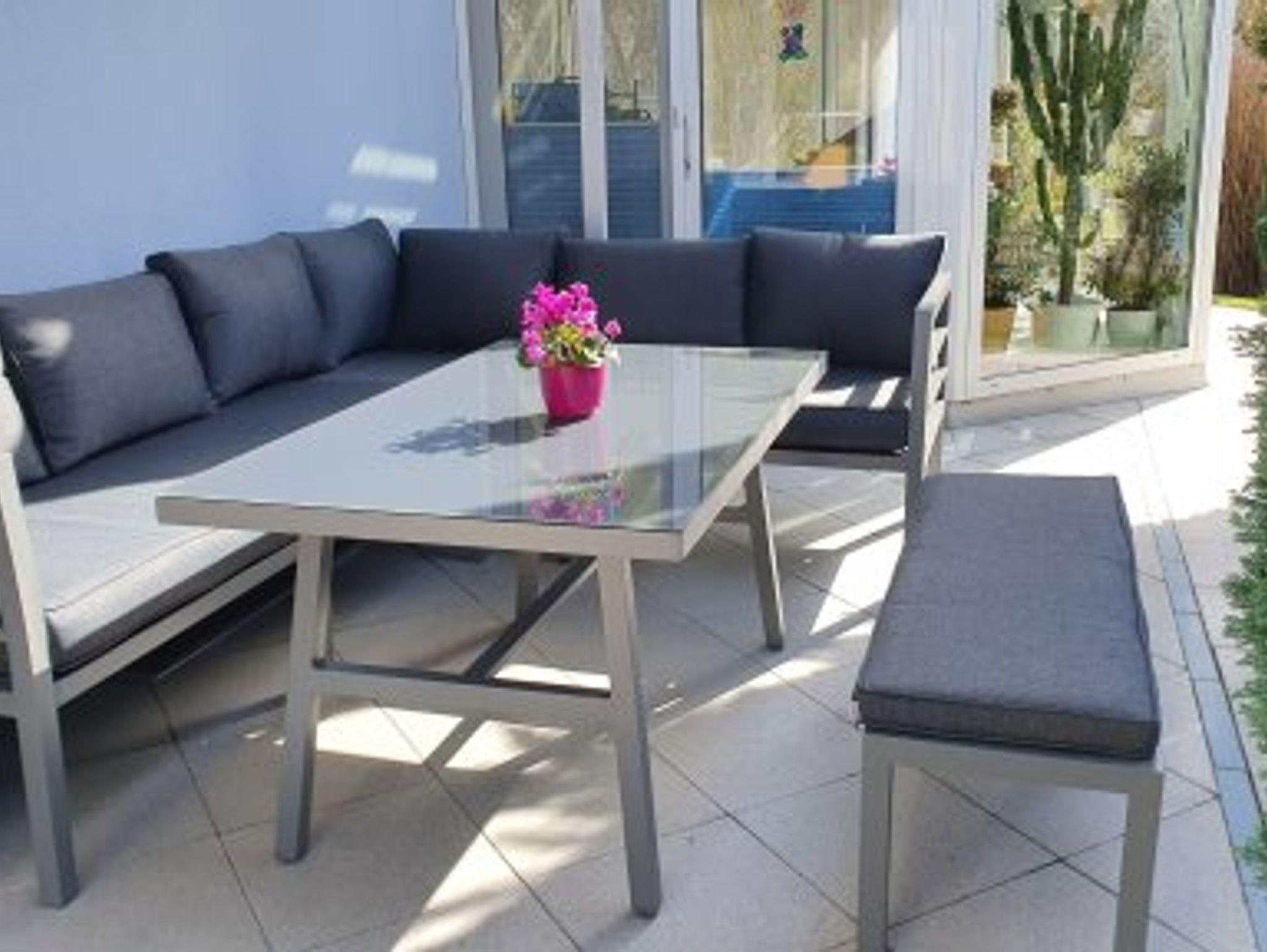 Das gemütliche südseitige Doppelzimmer im Erdgeschoß mit direktem Zugang zur Terrasse und Garten ist komplett ausgestattet. Das dazugehörige Bad mit Dusche und WC ist gegenüber und nur für sie alleine da. Sat TV mit DVD Player und Stereo Anlage sowie kostenloses WLAN sind natürlich ebenfalls vorhanden. Auf der Terrasse mit Markise steht eine bequeme Lounge Gruppe. Im Garten gibt es diverse Sitz- und Liege Möglichkeiten. Im Wintergarten können sie das Frühstück einnehmen und dort auch gemütliche Abende verbringen.