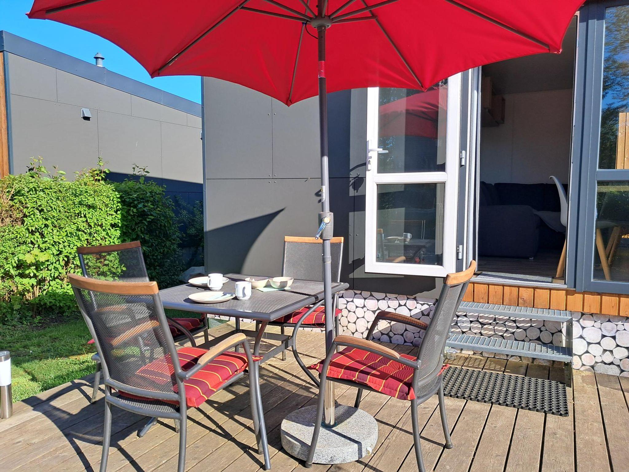 Auf unserer Holzterrasse können sie den tollen Urlaubs Tag bei einem Glas Wein ausklingen lassen.