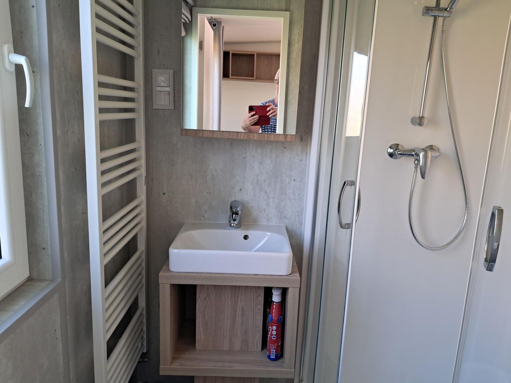 Das angrenzende Badezimmer verfügt über Dusche u. WC, hier können sie sich jederzeit Erfrischen.