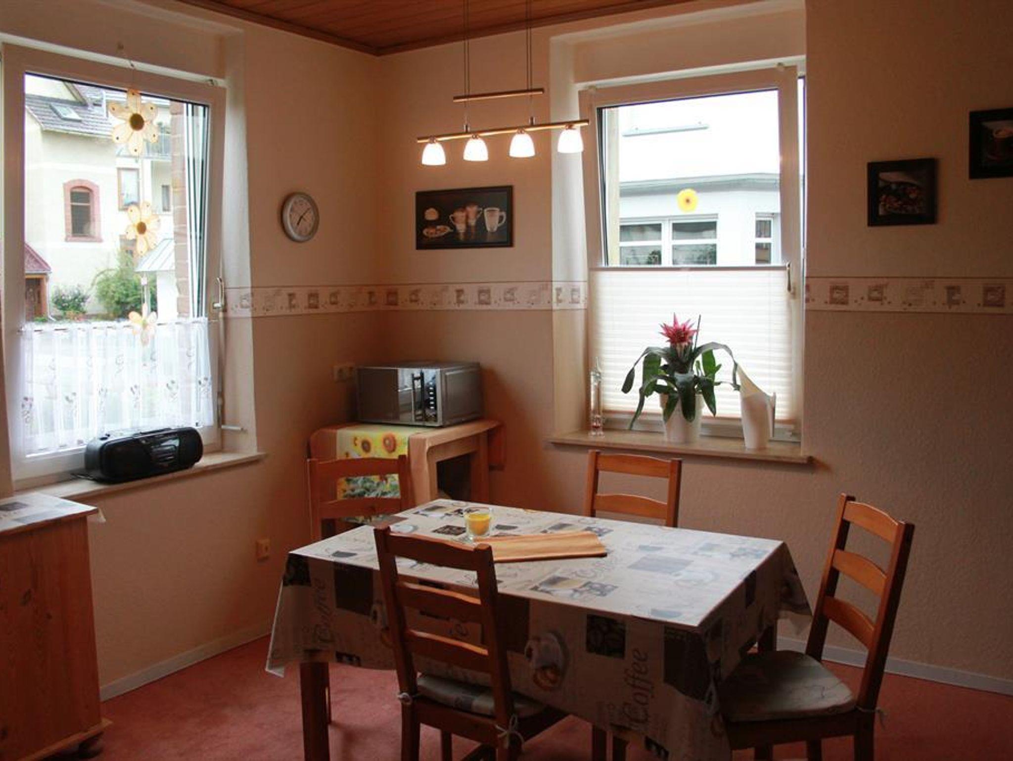 Das Appartment bietet eine Küche mit gemütlicher Sitzgruppe für bis zu vier Personen. Die Küchenzeile ist mit einer Kühl- und Gefierkombination, Backofen mit Herd und einer Spülmaschine ausgestattet. Ebenso steht den Gästen die vorhandene Mikrowelle, Kaffeemaschine (Filter-, sowie Padmaschine) und weitere Gerätschaften zur Verfügung.
