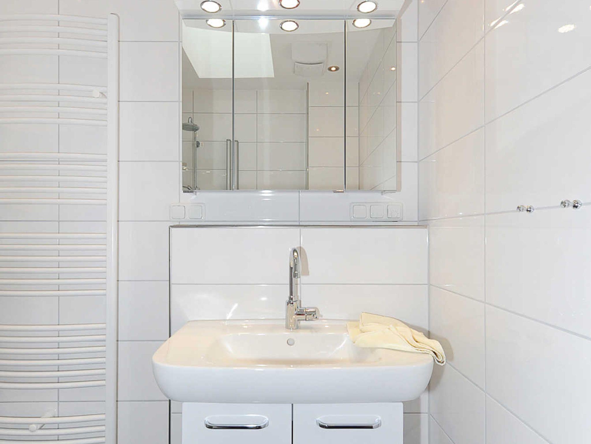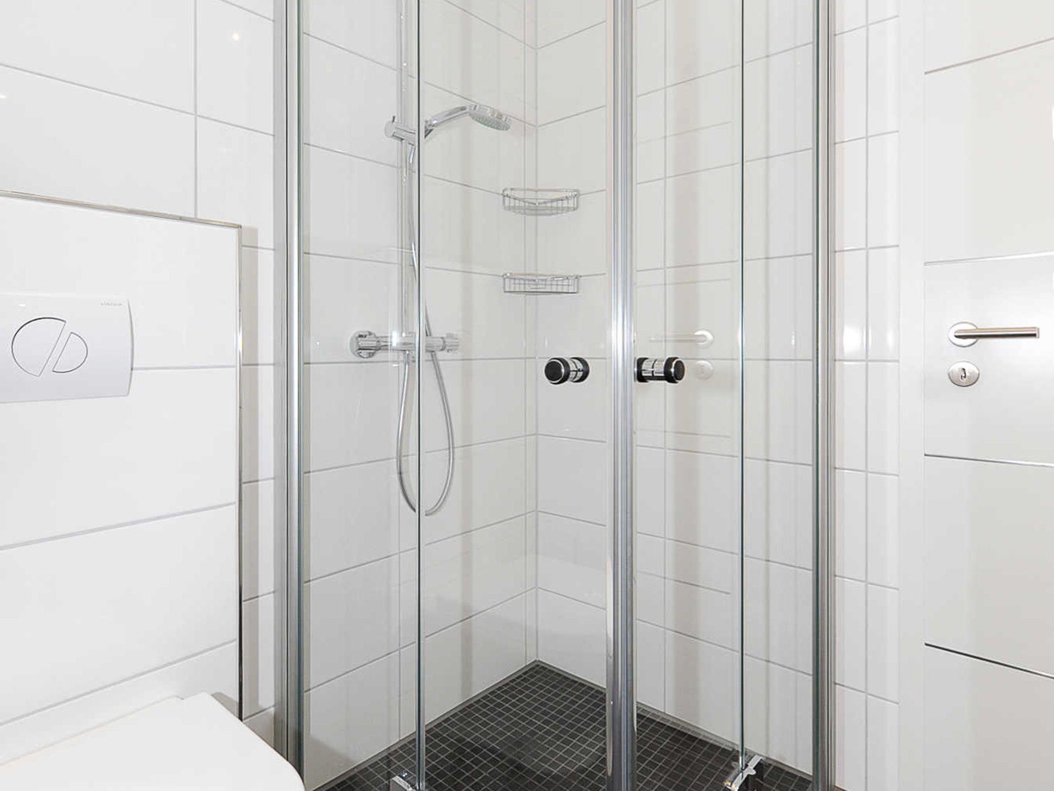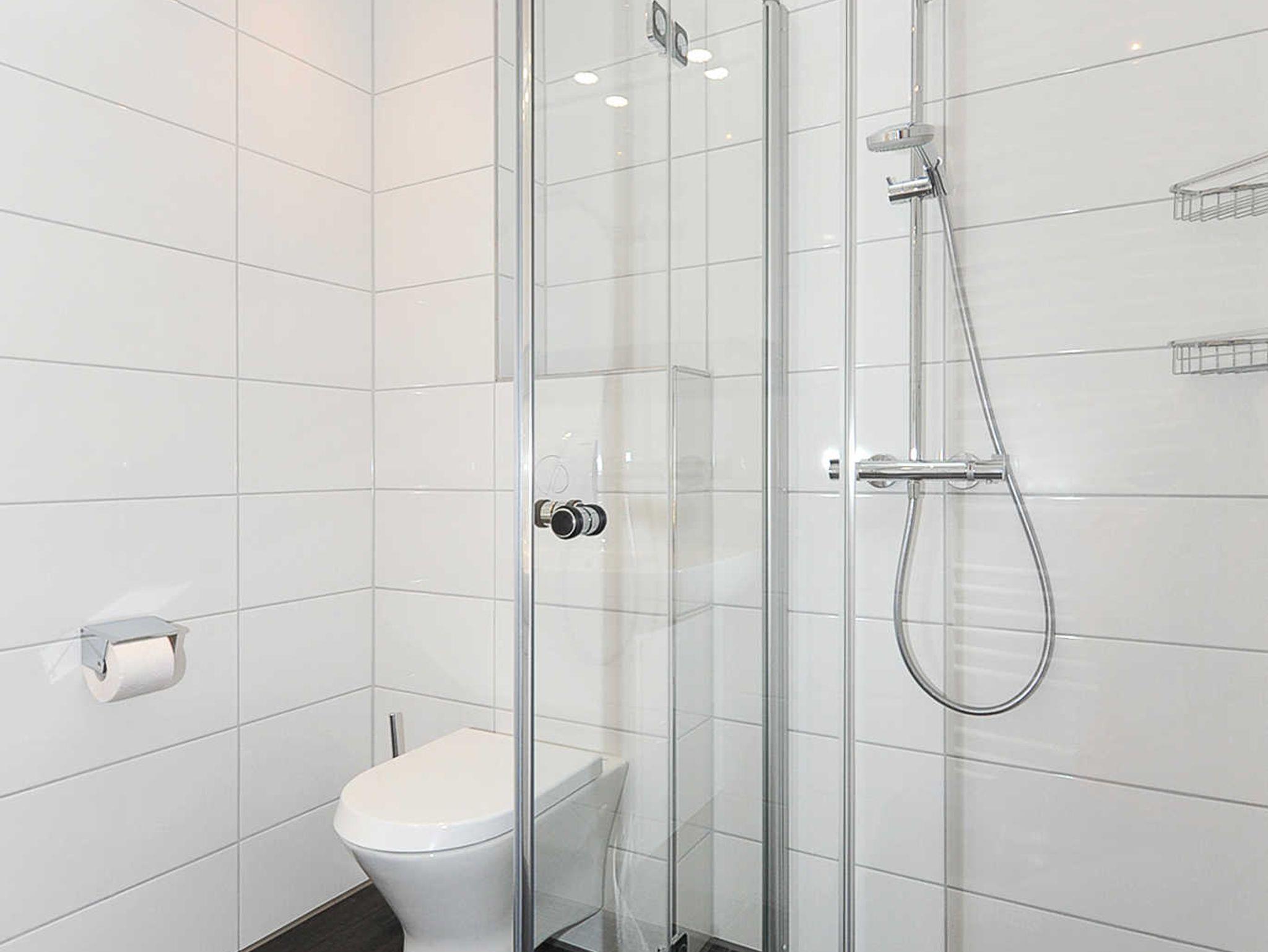 Badezimmer mit Dusche, Waschtisch und WC