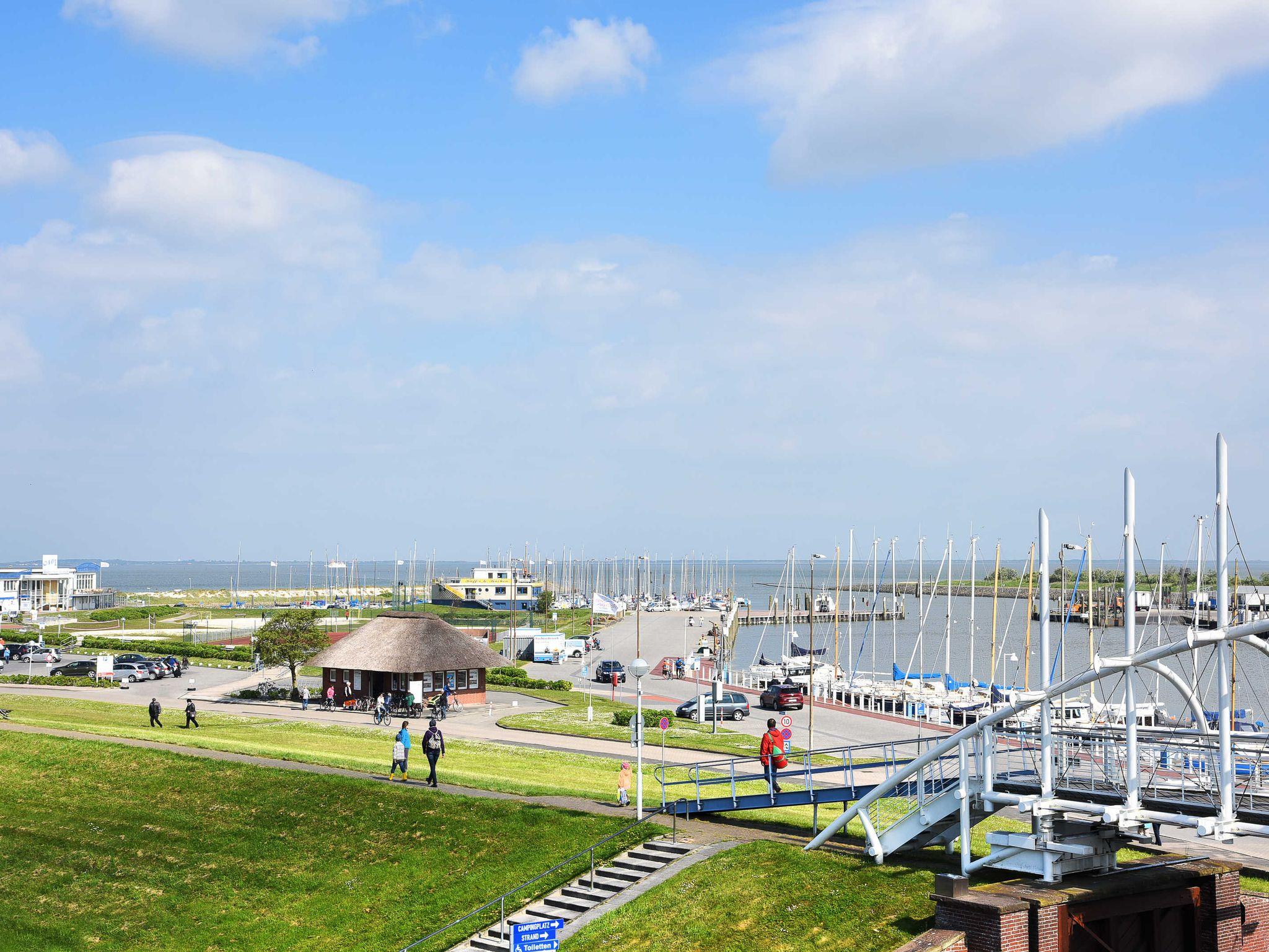 Vom Balkon aus haben Sie einen herrlichen Blick auf die Nordsee, Inseln , Strand und Hafen.