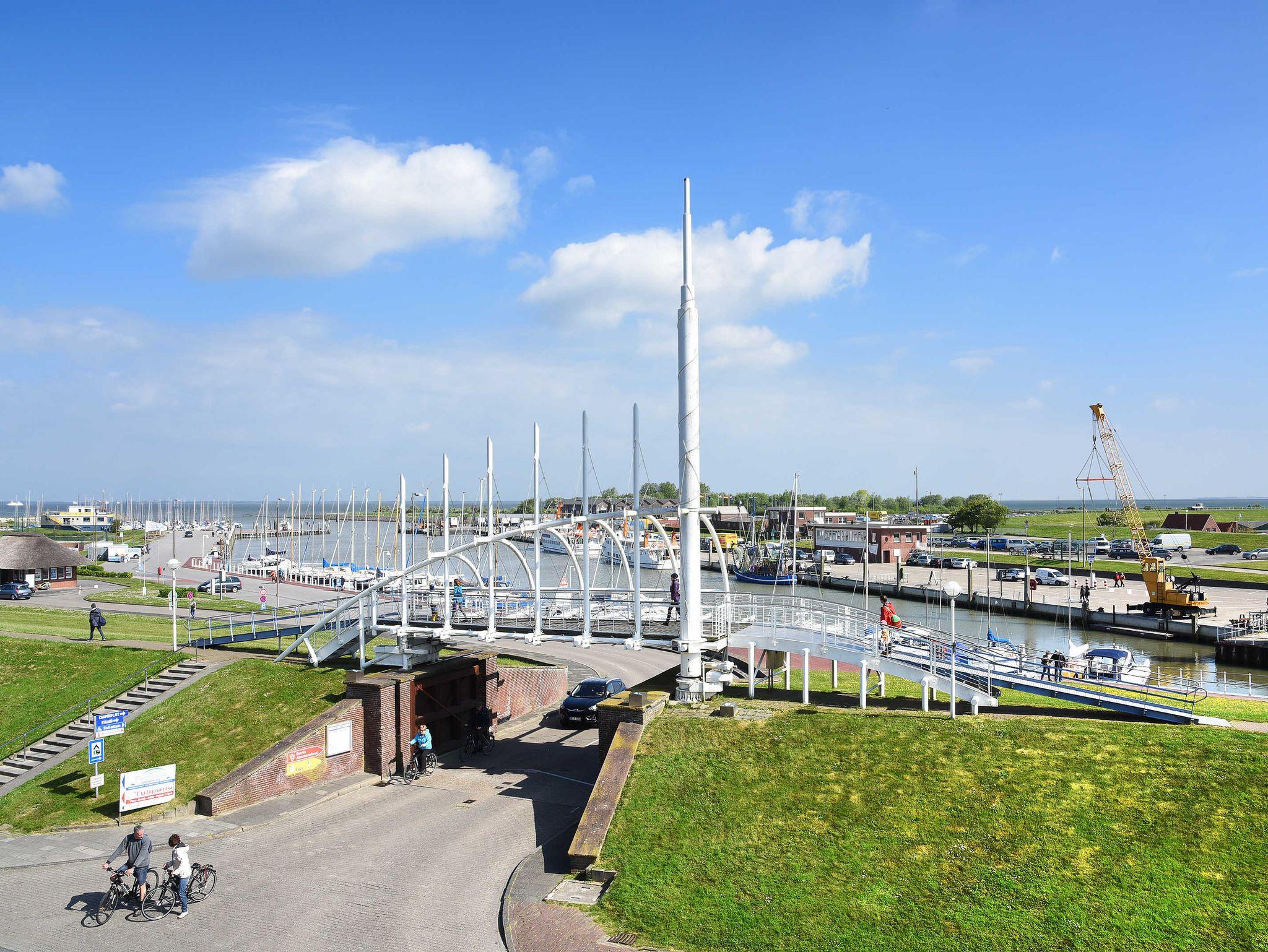 Die „Residenz Hafenidyll“ liegt direkt hinter dem Deich, unmittelbar am Hafen. Kürzer bis zum Strandportal und damit auch bis zum Strand geht es wirklich nicht. Der einzigartige Blick über den Hafen, die Ortschaft, die Nordsee sowie die vorgelagerten Inseln von Norderney bis Langeoog lässt Sie den Alltag schnell vergessen.