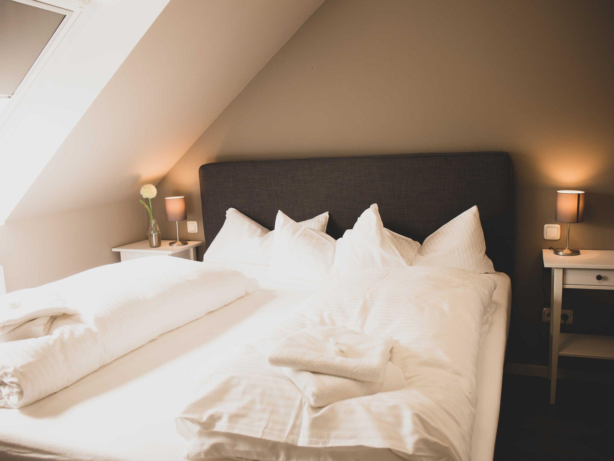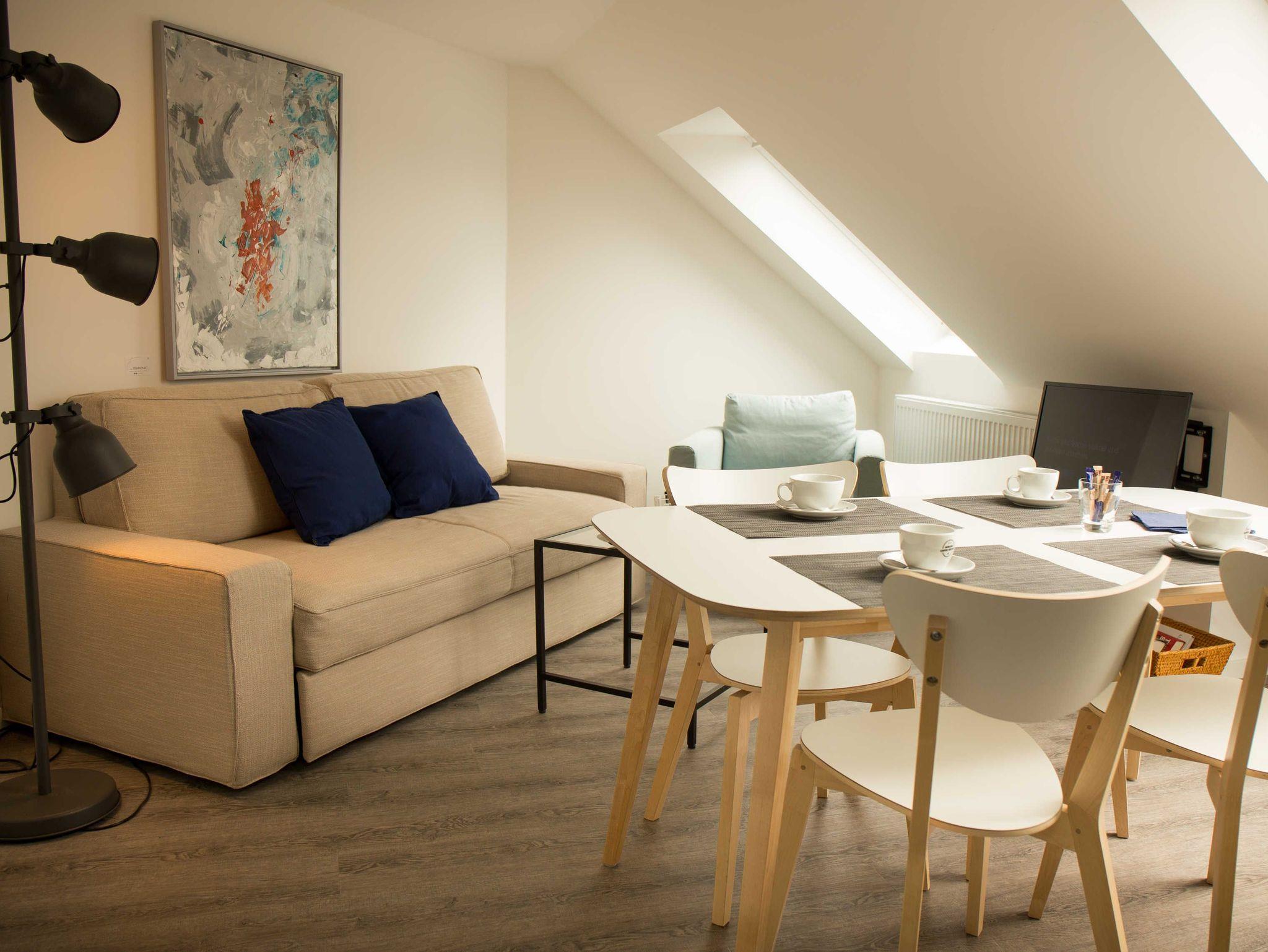 Ihre Unterkunft verfügt über kostenfreies WLAN. Der Wohnbereich bietet zudem eine gut ausgestattete offene Küchenzeile mit Kühlschrank, Gefrierfach, Kaffeemaschine, Wasserkocher und Mikrowelle. Das Appartement verfügt über einen Esstisch für 2 Personen und einen behaglichen Sitzbereich. Im separaten Schlafzimmer steht Ihnen ein komfortables Boxspringbett zur Verfügung. Im stilvollen Badezimmer befinden sich eine große begehbare Dusche sowie ein Waschtisch mit Föhn. Des Weiteren ist im Buchungspreis ein Wäschepaket mit Handtüchern und Bettwäsche enthalten.