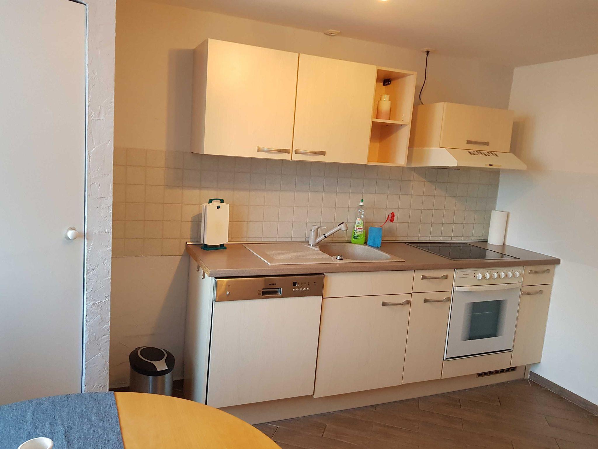 Die große Einbauküche unterstützt die Selbstversorgung unkompliziert und ist mit Herd, Geschirrspüler, Kühlschrank mit Gefrierfach, Mikrowelle, Radio und Sitzecke ausgestattet. Das Bad verfügt über eine ebenerdige Dusche, WC und eine Waschmaschine. Auch der geräumige Flur ist nutzbar und bietet zusätzlich einen Tisch mit Stühlen.