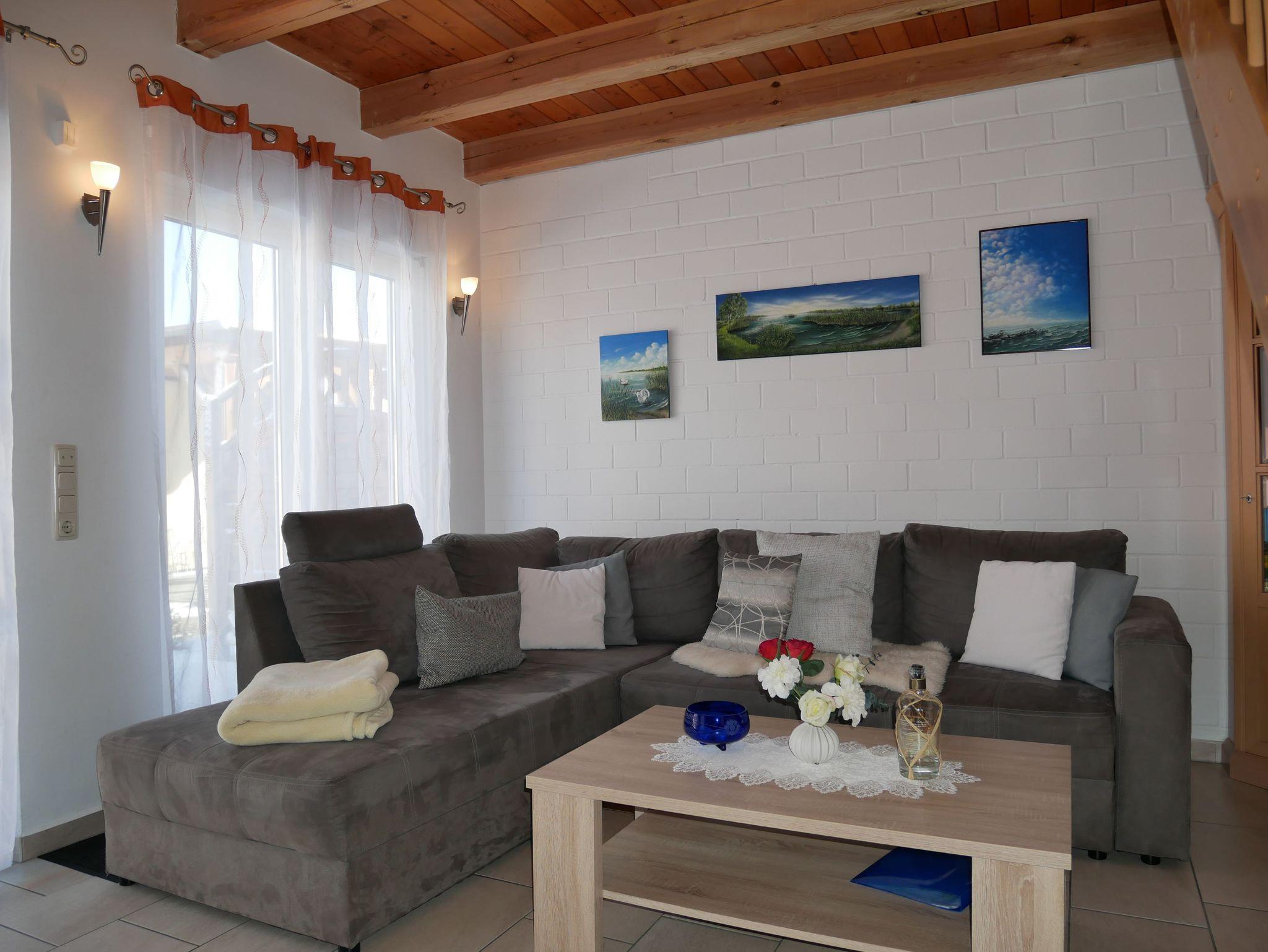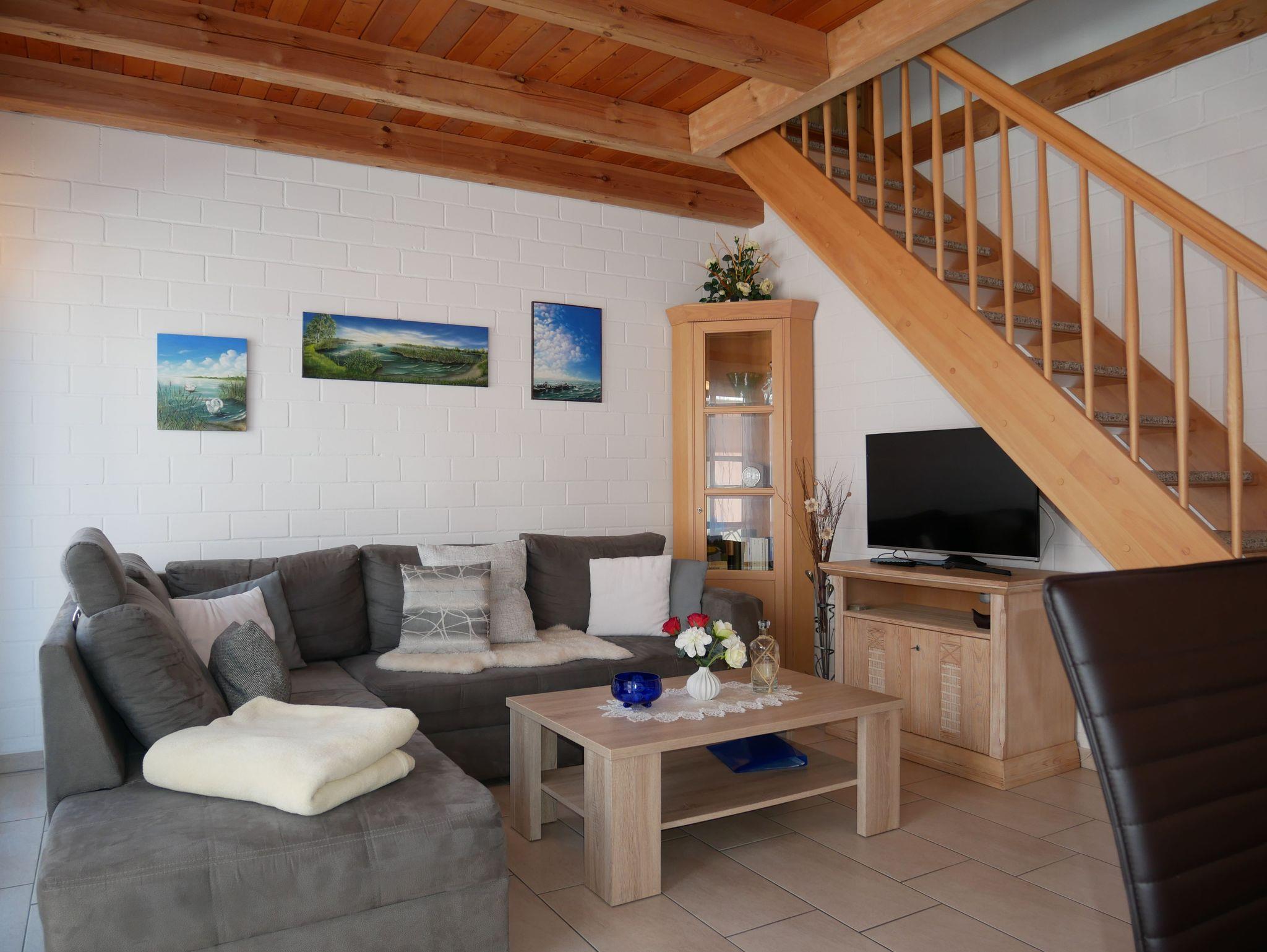 Das helle, moderne Ferienreihenmittelhaus ist ca. 80qm groß, verteilt sich auf zwei Ebenen und verfügt über eine möblierte Terrasse. Im Erdgeschoss befindet sich der Wohn-Essbereich mit Flat-TV, gemütlicher Sofalandschaft und Esstisch sowie eine separate, voll ausgestattete Küche. Diese ist mit Backofen, Cerankochfeld, Geschirrspüler, Kühlschrank mit Tiefkühlfach, Mikrowelle, Spüle, Kaffeemaschine, Wasserkocher und Toaster ausgestattet. Das Badezimmer verfügt über eine ebenerdige Dusche, WC und Waschbecken.