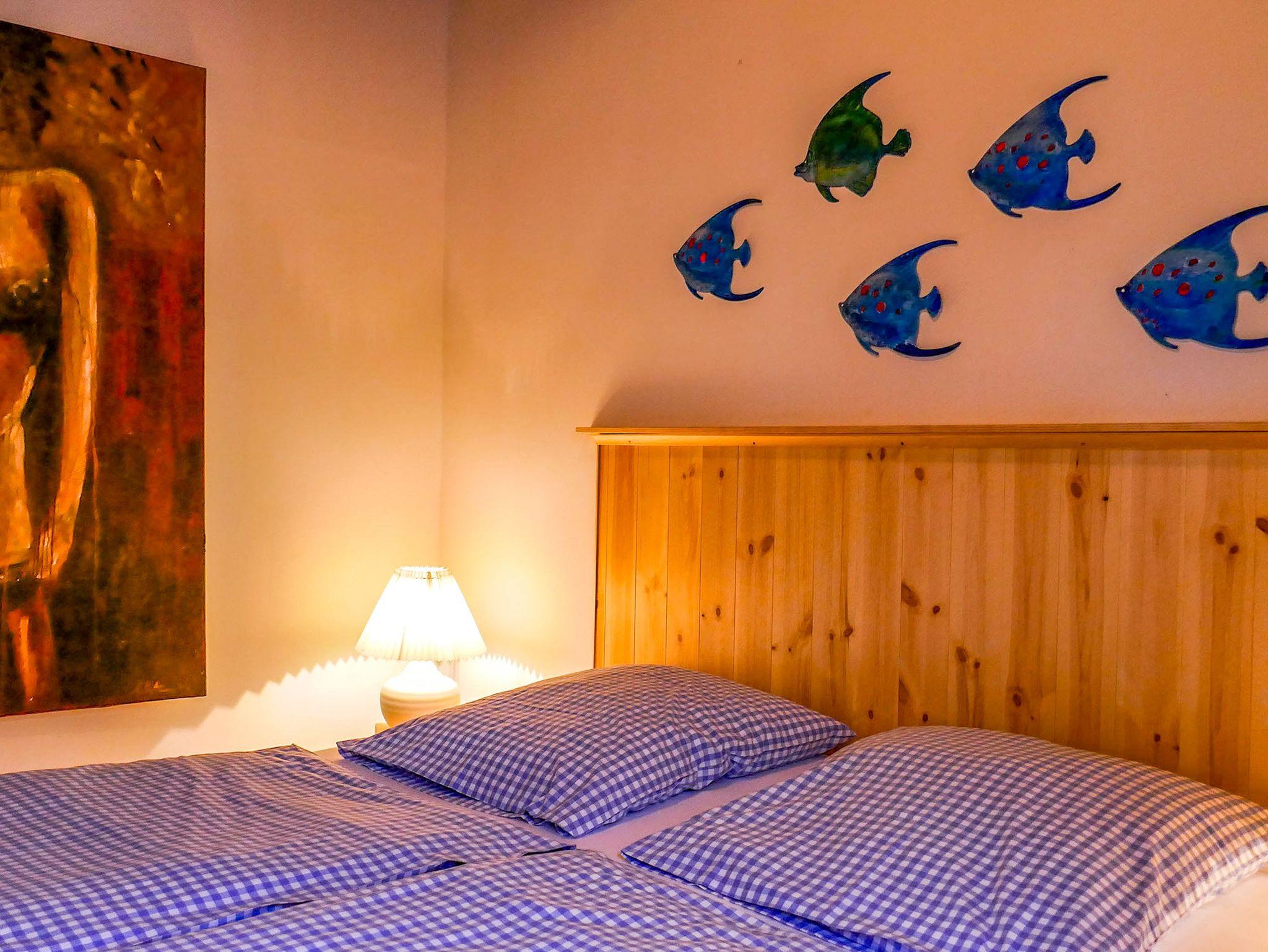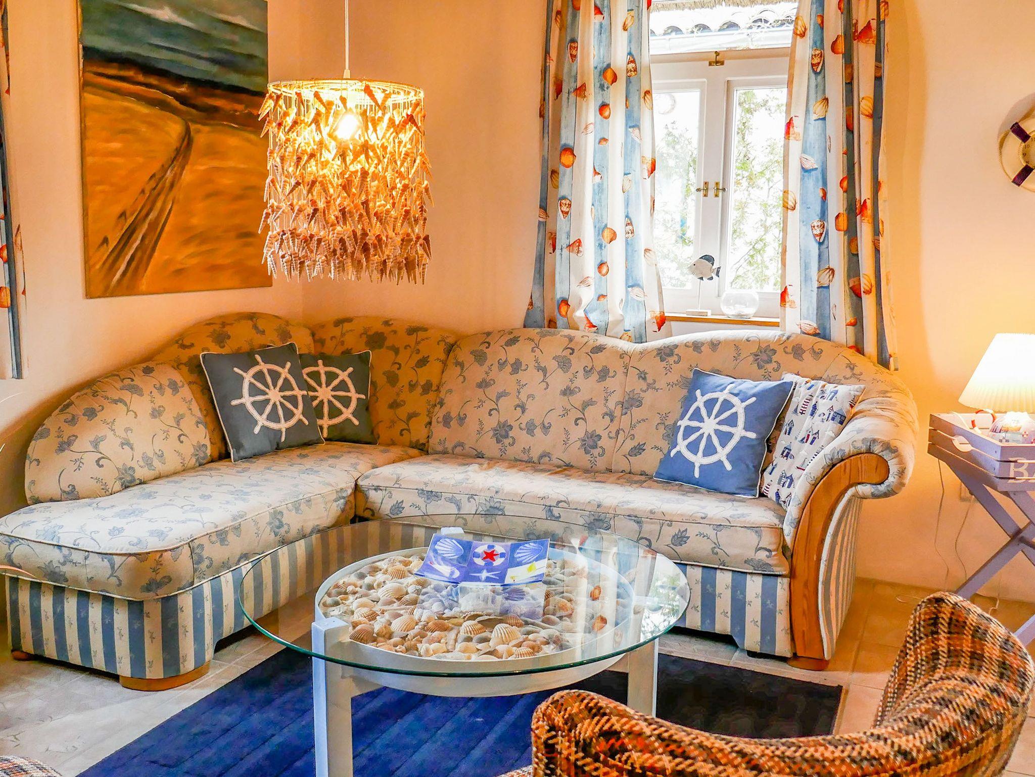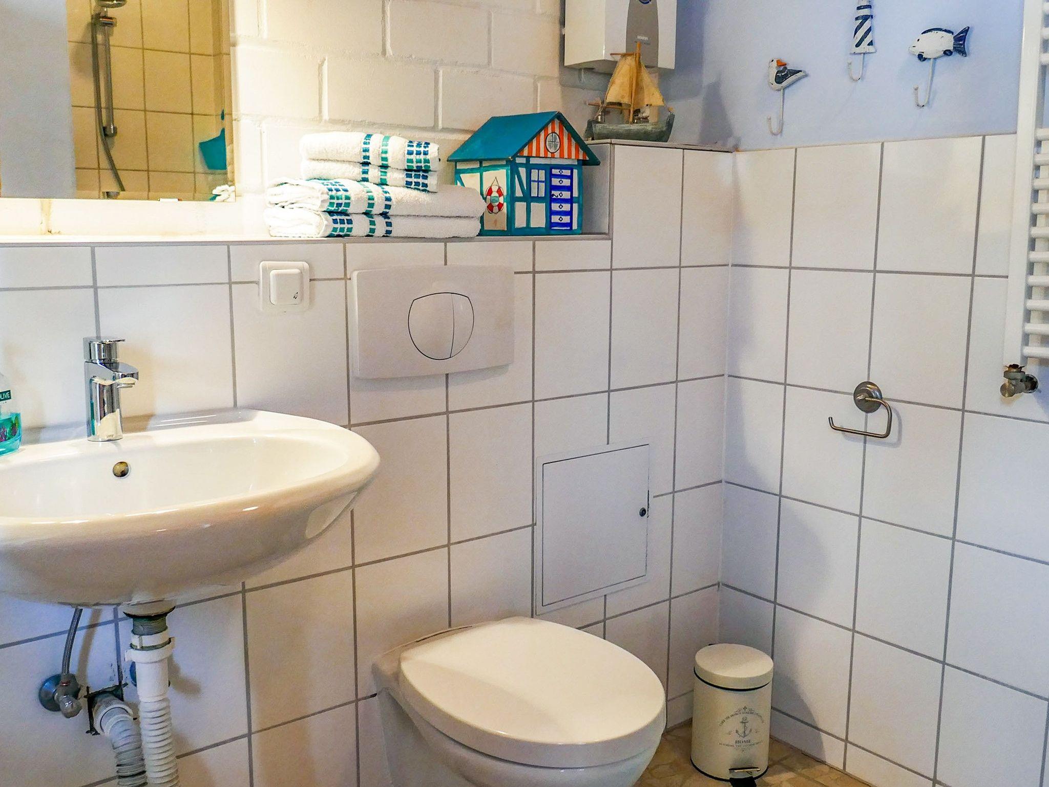 Die Ferienwohnung Nordkap mit maritimen Flair befindet sich im Erdgeschoss des Reetdachhauses und ist ideal für 4 Personen geeignet. Sie verfügt über ein Wohnzimmer mit Sofa, TV und Essbereich, eine Küche mit Backofen und Kühlschrank und ein Bad mit Dusche und WC. Die beiden Schlafzimmer sind mit einem Doppelbett (180x200) und zwei Einzelbetten (90x200) ausgestattet.