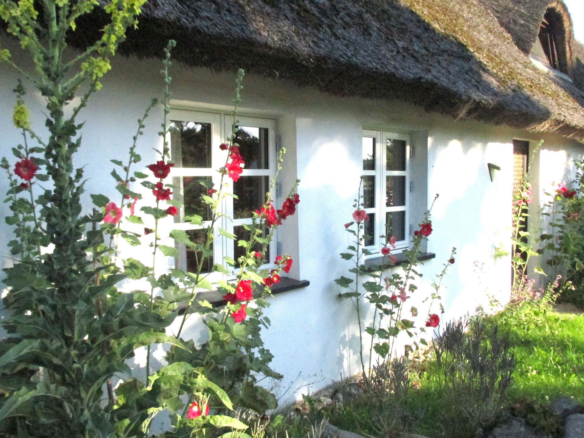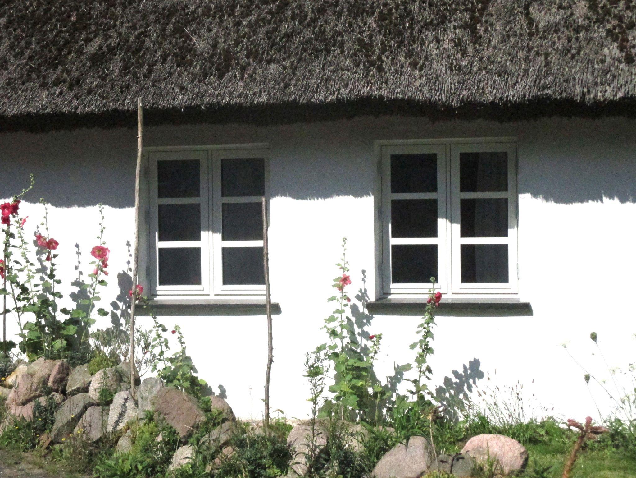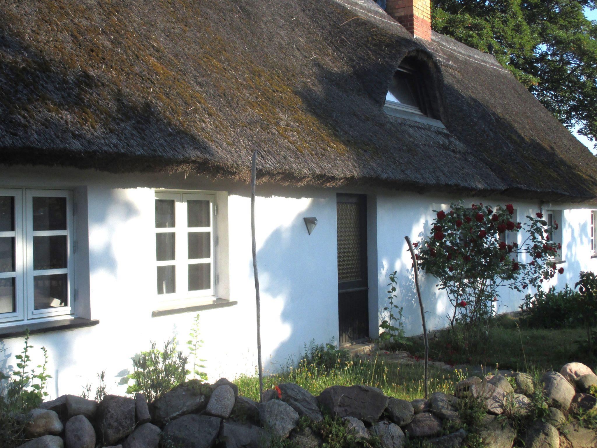 Die Ferienwohnung unter dem Reetdach des alten Hauses hat einen separaten Eingang und ist lichtdurchflutet und freundlich. Sie erstreckt sich über zwei Etagen. Die nach oben offene Wohnküche im Erdgeschoss verfügt über freiliegende Deckenbalken. Über eine steile Treppe gelangen Sie in das luftige Schlafzimmer im Obergeschoss, in dem sich ein Doppelbett und ein Einzelbett befinden. Sie eignet sich besonders gut für Paare. Für Ihre Fahrräder gibt es eine abschließbare Abstellmöglichkeit. Ein Parkplatz steht Ihnen ebenfalls zur Verfügung. Im Garten kann die Wäschespinne gern zum Trocknen der Handtücher genutzt werden.
