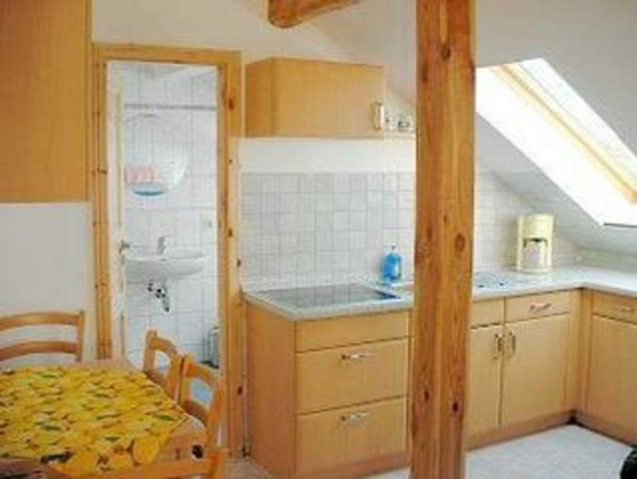 Ferienwohnung für 43 Personen, separat im Dachgeschoss, Wohnraum mit gemütlicher Couchgarnitur (Leder), Sat-TV, Radio, 2 Schlafräume (1 Schlafraum mit Doppelbett u. 1 Schlafraum mit 2 Einzelbetten), Einbauküche mit Herd und Mikrowelle sowie Essplatz, Dusche + WC, Sitzgelegenheit im Freien, Grillmöglichkeit, Kfz-Stellplatz am Haus Bettwäsche inklusive, Handtücher bitte mitbringen, ganzjährig, ruhige Lage, Fahrradverleih, Tischtennisplatte, frische Eier, Wlan gratis