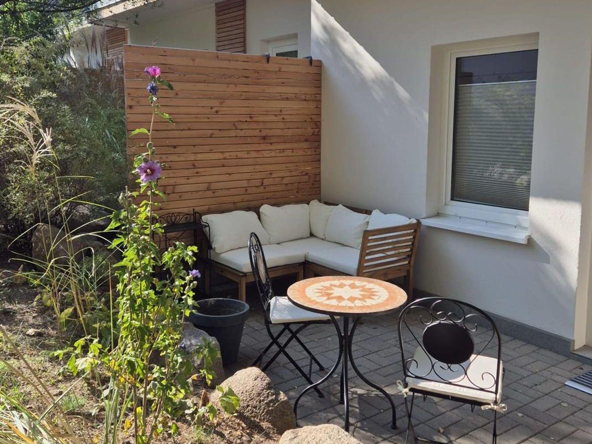 Die Terrasse, ein idyllischer Rückzugsort, bietet einen herrlichen Blick in die grün gestaltete Ferienanlage und lädt dazu ein, den Tag entspannt ausklingen zu lassen. Ein eigener Parkplatz, ein sicherer Fahrradraum und ein einladender Grillplatz stehen Ihnen für einen rundum sorglosen Aufenthalt zur Verfügung.