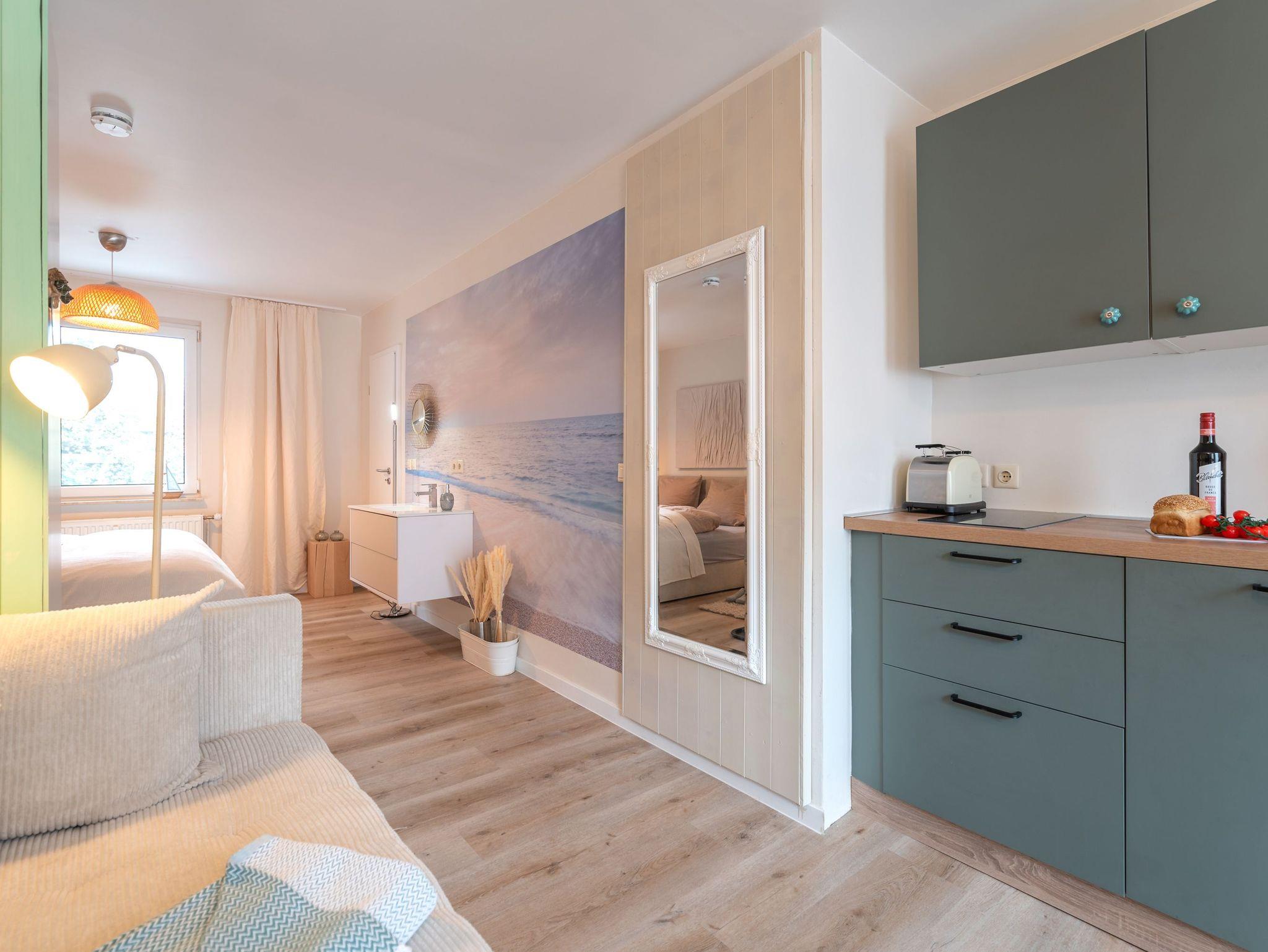 Das 2024 sanierte Appartement Urlaubsidyll Benz bietet Ihnen auf charmante Weise alles, was Sie für einen erholsamen Urlaub benötigen. Es erinnert an ein großes, modernes Hotelzimmer, jedoch mit der Privatsphäre eines separaten Eingangs, einer eigenen Küche und einer Terrasse. Das offene Raumkonzept kombiniert einen gemütlichen Wohn- und Essbereich mit einer funktionalen, modernen Küchenzeile. Hier gibt es einen kleinen Tischofen für die Brötchen am Morgen und zwei Cerankochfelder.