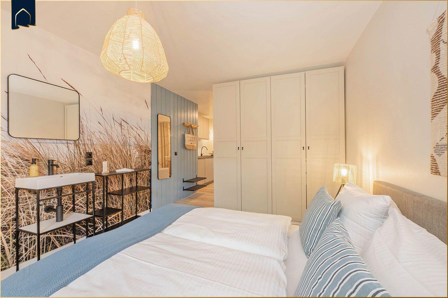 Im gesamten Appartement steht dir WLAN zur Verfügung. Sichtschutz an allen Fenstern, ein Ganzkörperspiegel, Garderobe und weitere praktische Details sorgen für hohen Komfort. Die Ferienwohnung ist rauchfrei und bietet einen eigenen Parkplatz direkt am Haus – bequem, sicher und direkt vor der Tür.