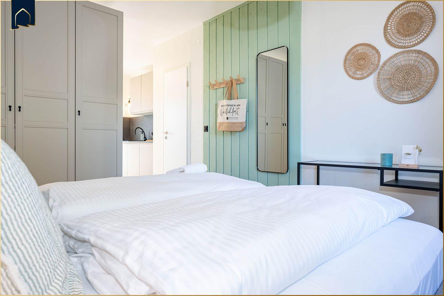 Die Wohnung verfügt über ein separates Schlafzimmer mit Schlafmöglichkeiten für bis zu 3 Personen, ein Badezimmer mit Dusche sowie eine voll ausgestattete Küche inkl. Kühlschrank, Gefrierfach, Herd, Mikrowelle, Toaster, Wasserkocher, Kaffeemaschine und Spülmaschine. Im hellen Wohnbereich finden Sie eine gemütliche Sofaecke mit TV und Esstisch. Ein weiteres Highlight ist die überdachte Terrasse mit Gartenmöbeln und Grillplatz – ideal für ein Frühstück im Freien oder entspannte Abende im Sonnenuntergang. WLAN, Ganzkörperspiegel, Haartrockner und Fliegengitter sorgen für zusätzlichen Komfort.