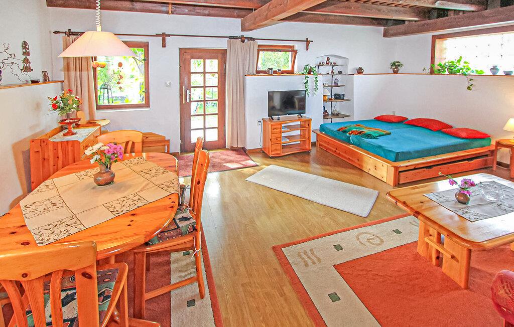 Den rustikke ferielejlighed til op til 4 personer ligger i et separat udhus på ejerens 1.500 kvm store beboelsesejendom centralt, men roligt. Den er udstyret med en kombineret stue/soveplads (dobbelt liggestol, polstrede møbler, spiseplads, fladskærms-tv, radio), et soveværelse (dobbeltseng, 2 køjer til børn), tekøkken (elektrisk kogeplade, køleskab med fryser, mikroovn, miniovn, diverse køkkenmaskiner) og bad/toilet. En barneseng og en høj stol kan stilles til rådighed for små børn Lejligheden har ingen varme. Der er mulighed for elvarme på badeværelset. En ekstra mobil varmelegeme kan leveres efter anmodning mod et gebyr. Der er også en møbleret terrasse, grill, parkeringsplads og WiFi til rådighed. Den samlede rejsepris inkluderer slutrengøring, sengelinned, håndklæder, el og vand. Betales på stedet: Mobil radiator (hvis det ønskes) 10 EUR/engangs/ophold. Kæledyr er ikke tilladt i denne ejendom. Benz, byen på Schmollensee omgivet af skovklædte bakker, er en af de smukkeste landsbyer på øen Usedom. Attraktioner er St. Petri-kirken og den hollandske vindmølle. Der er restauranter i byen, og der er gode fiskemuligheder ved Schmollensee. Achterwasser med badestrand ligger omkring 2 km væk, Østersøstranden (badebyen Bansin) er omkring 6 km væk og en golfbane er omkring 4 km væk.