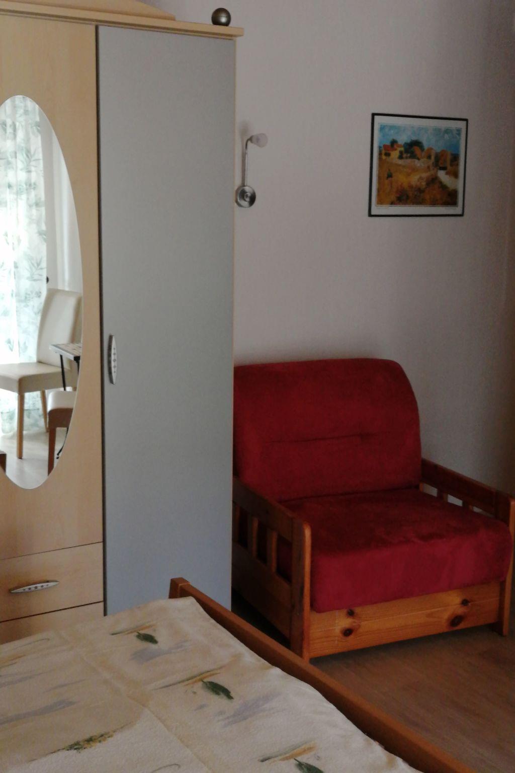 You will find a lovingly furnished apartment of approx. 50m² in a cosy ambience, which has a cosy kitchen-living room with a fully equipped kitchenette, a separate dining area offers enough space for up to three people. The comfortable couch corner, SAT-TV and reading material in the kitchen invite you to relax. The spacious bedroom has a large double bed with excellent mattresses and cosy bedding. The bright daylight bathroom is equipped with a flat-entry shower and WC.