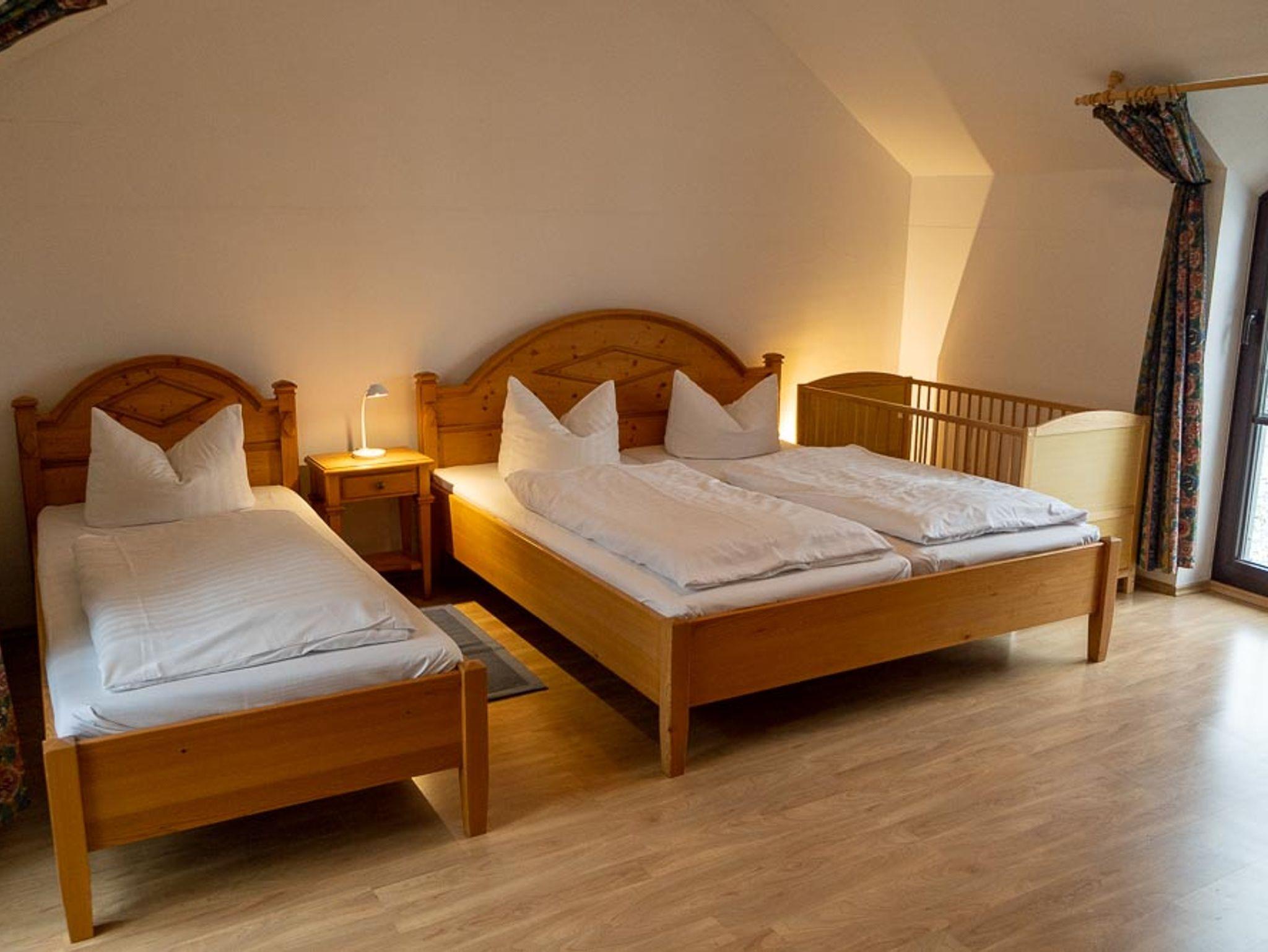 Ein Zustell- oder Babybett ist in jedem Schlafzimmer möglich. Baby- und Kleinkinderausstattung ist natürlich ebenfalls komplett vorhanden.