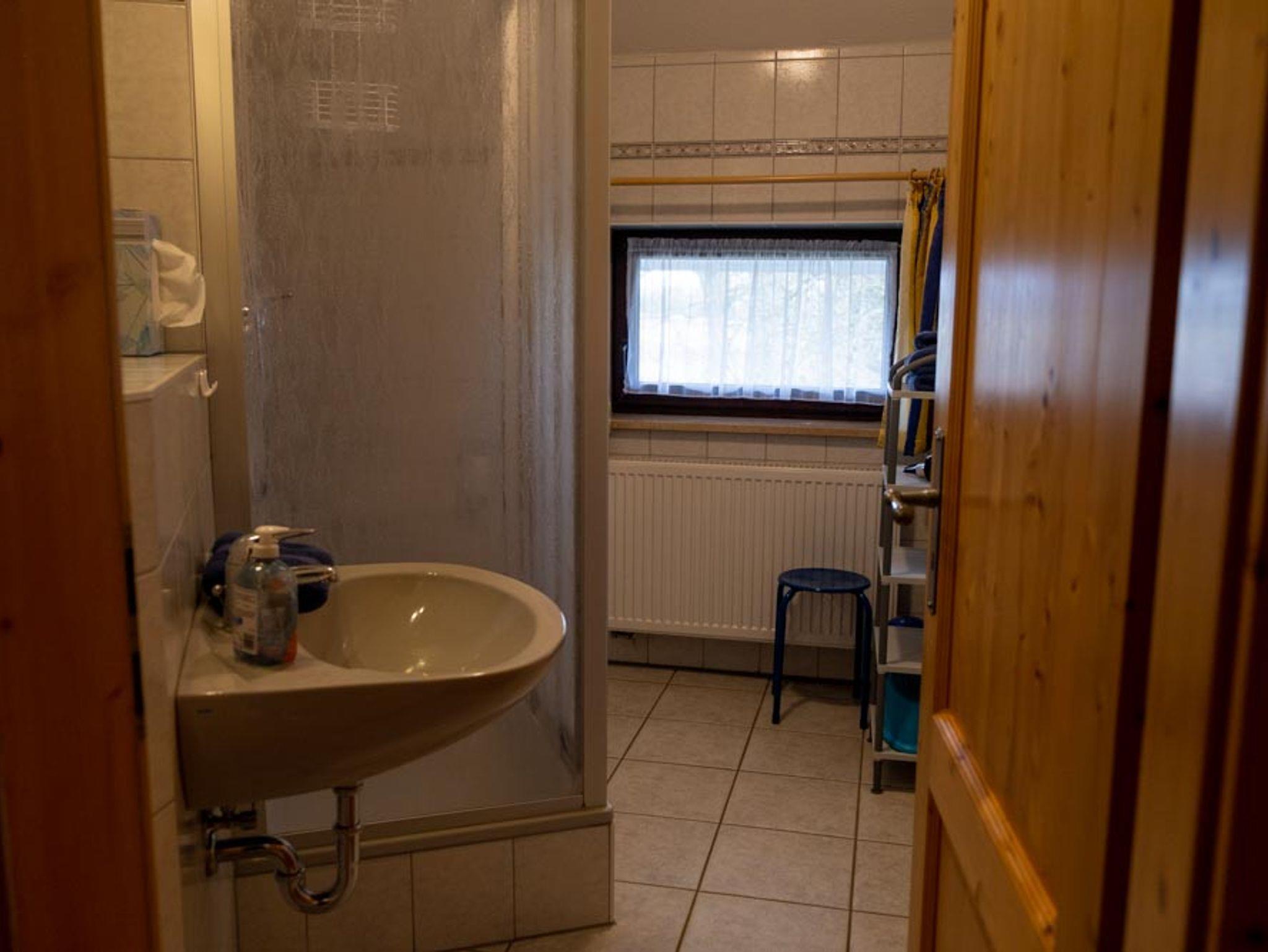 Diese Wohnung (35m²) liegt im 1. Stock und hat einen schönen Blick direkt auf unseren schönen Obstgarten und den darunterliegenden Teich mit den Gänsen. Sie hat ein Schlafzimmer mit Doppelbett, die Lattenroste sind im Kopfteil höhenverstellbar, ein Wohnzimmer, Küchenzeile, Dusche / WC mit Fenster. Die Küche ist komplett ausgestattet mit Geschirr, Töpfen und Besteck, einen Geschirrspüler, Kaffeemaschine, Kühlschrank mit Gefrierfach, Herd, Backofen, Toaster und Wasserkocher.