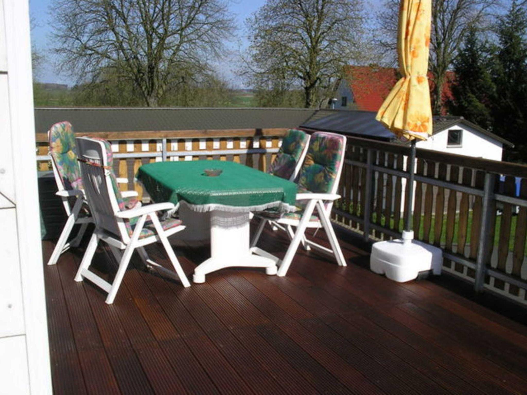 Schlafzimmer im Landhausstil mit Doppelbett und verstellbaren Lattenrosten, Wohnzimmer mit Sitzgruppe ausziehbar (1,50 m breit),integ. Komplettküche mit Geschirrspüler und E-Herd, Ausgang zur eigenen möbliertenDachterrasse, dig.TV,DVD, Telefon und WLAN mit sorglosinternet zum Unkostenbeitrag von 5,00 €/ Aufenthalt. Bad mit Waschplatz , Dusche und WC, voll gefliest und Fenster, eigener Eingang über Terrasse