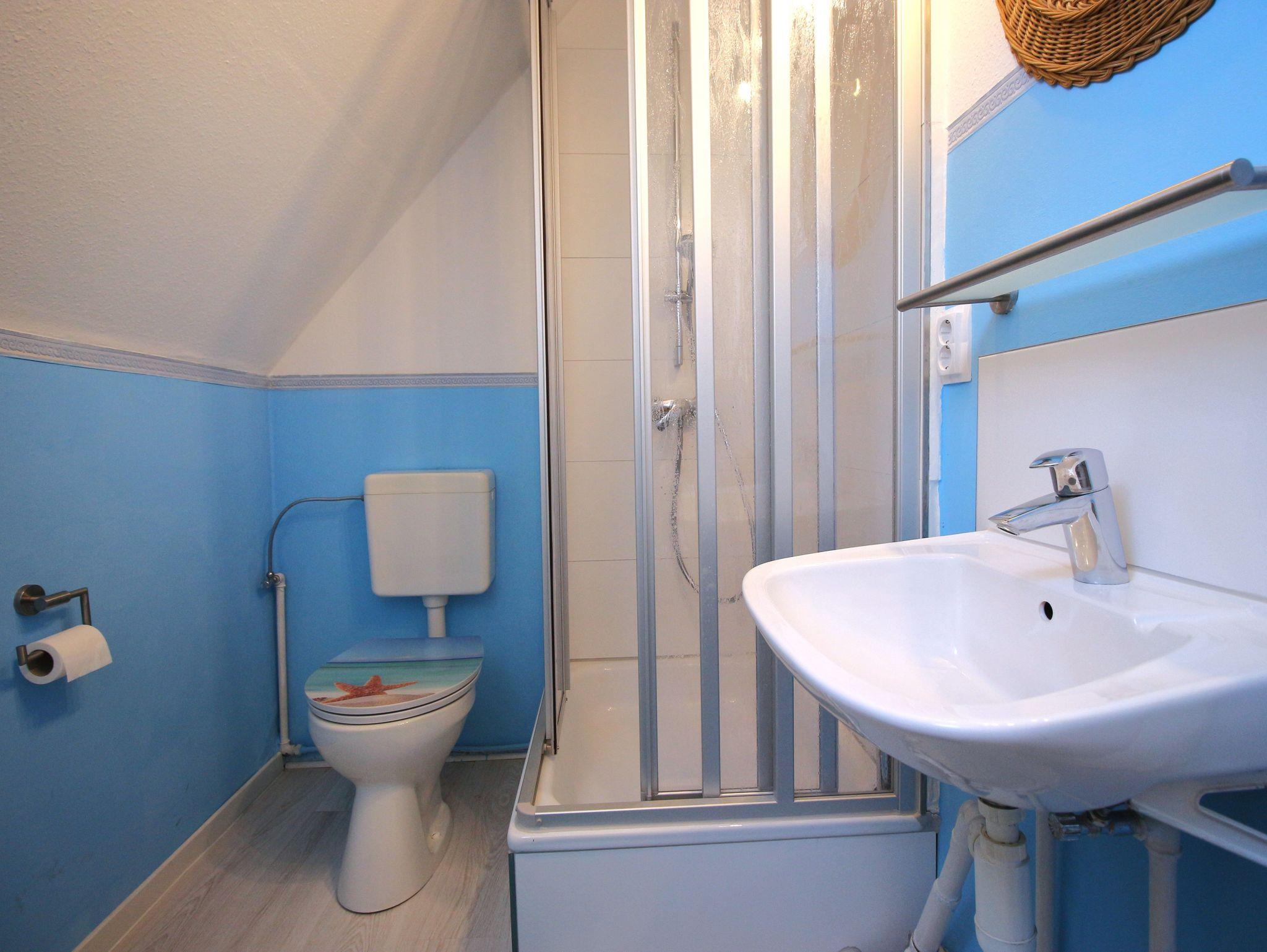 • Bad mit Dusche und WC sowie Dachfenster, Vinylboden