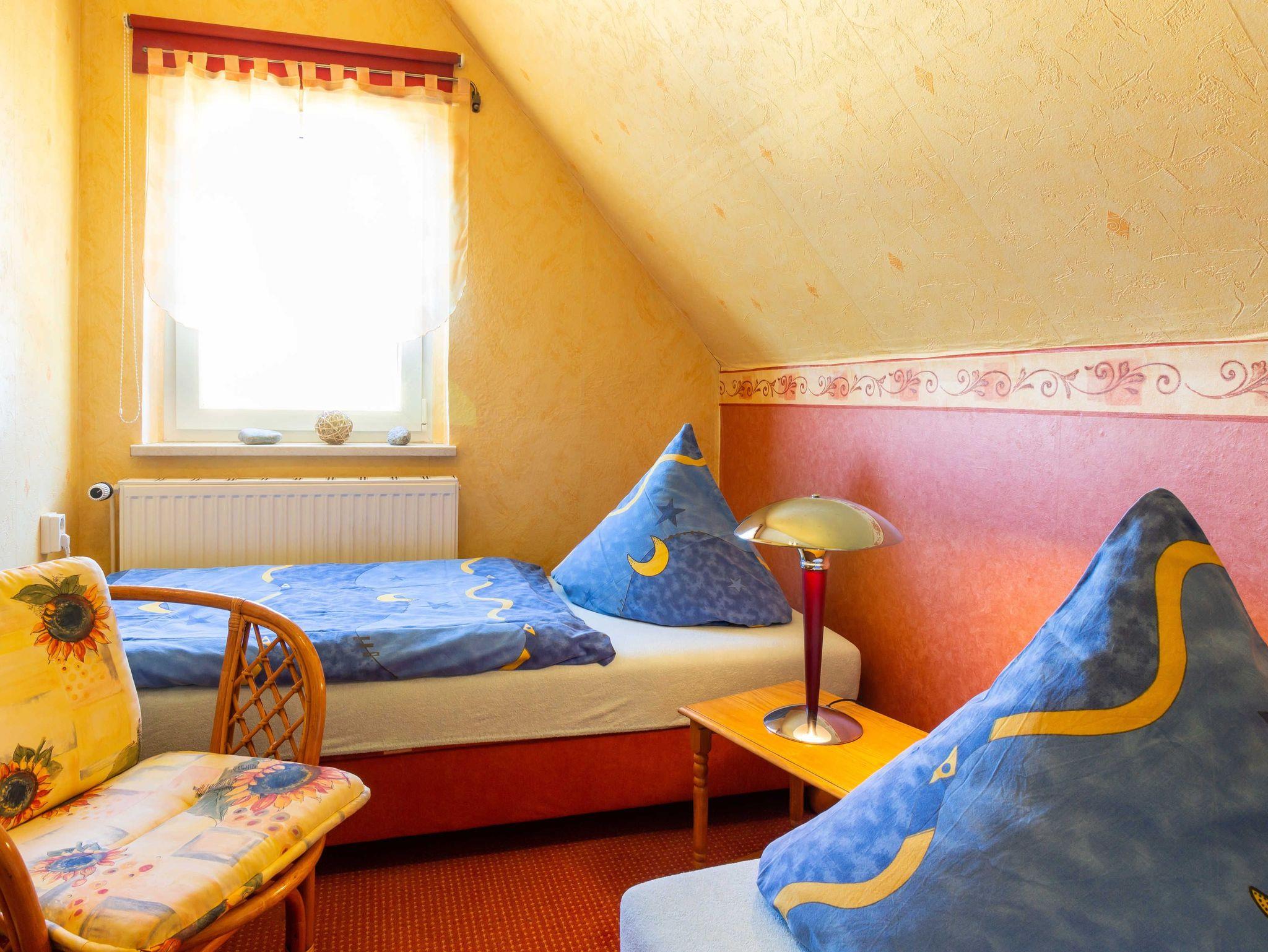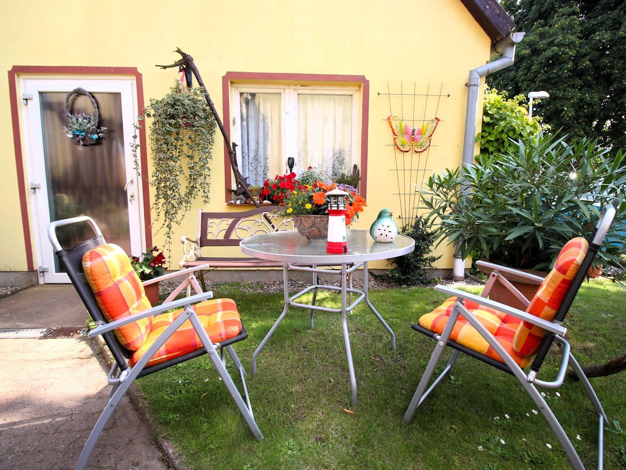 Im Garten stehen Sitz- und Grillmöglichkeiten zur Benutzung bereit. Für die Kleinen gibt es eine Schaukel und einen Sandkasten. Zu der Wohnung gehört ein separater Parkplatz. Dieser befindet sich direkt am Haus.