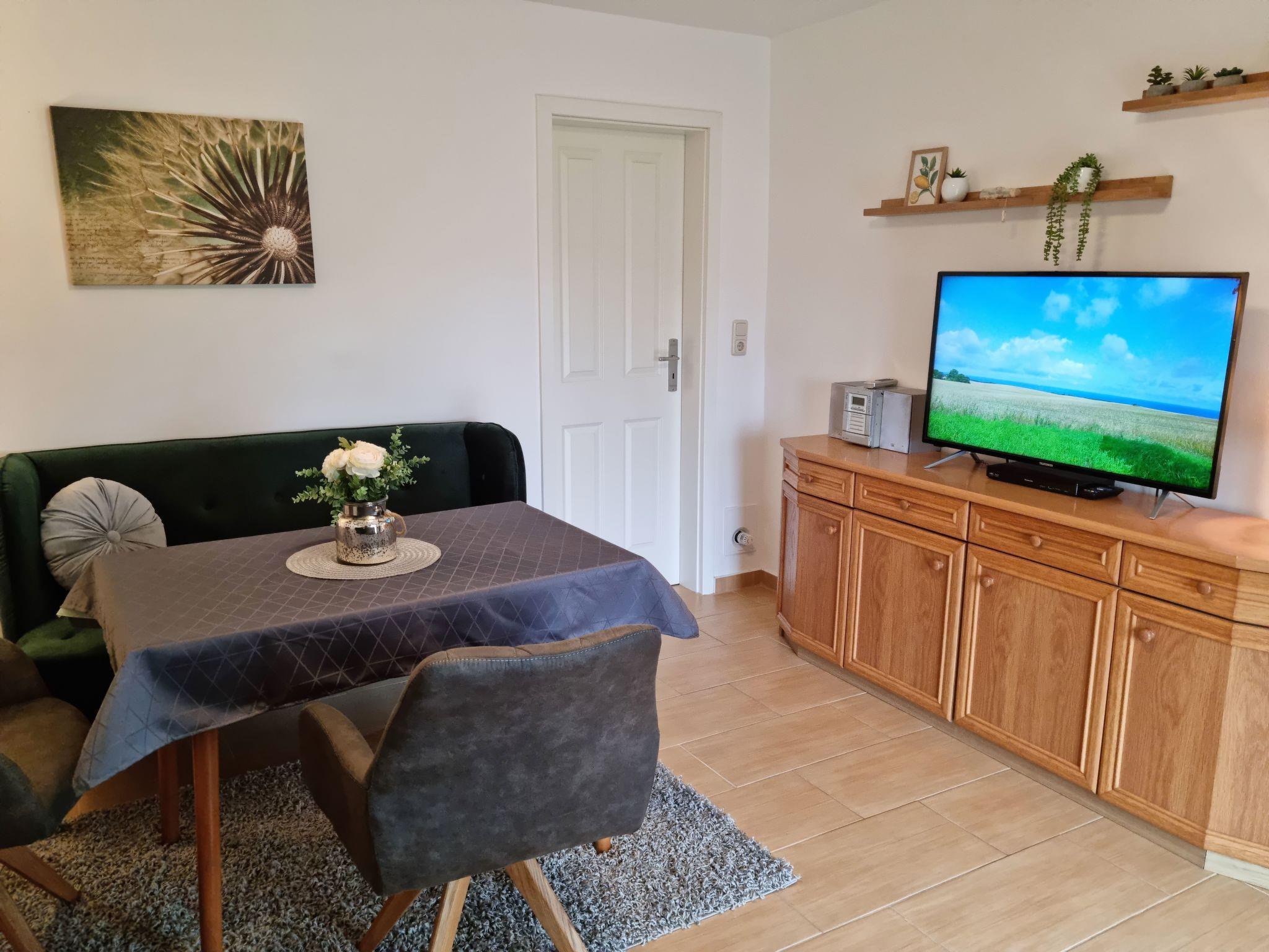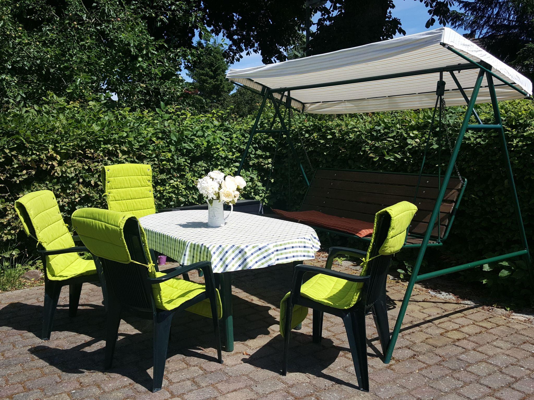 You can access your terrace and the meadow with the fireplace directly from your living room and one bedroom. Two further terraces are available on the large fenced property. You and the children can play table tennis or ball games on the lawn. When the weather is nice, you can also have breakfast in the fresh air or use the beautiful summer evenings for a barbecue. If the weather is favourable, you can end the evening with a crackling fire at our campfire site.