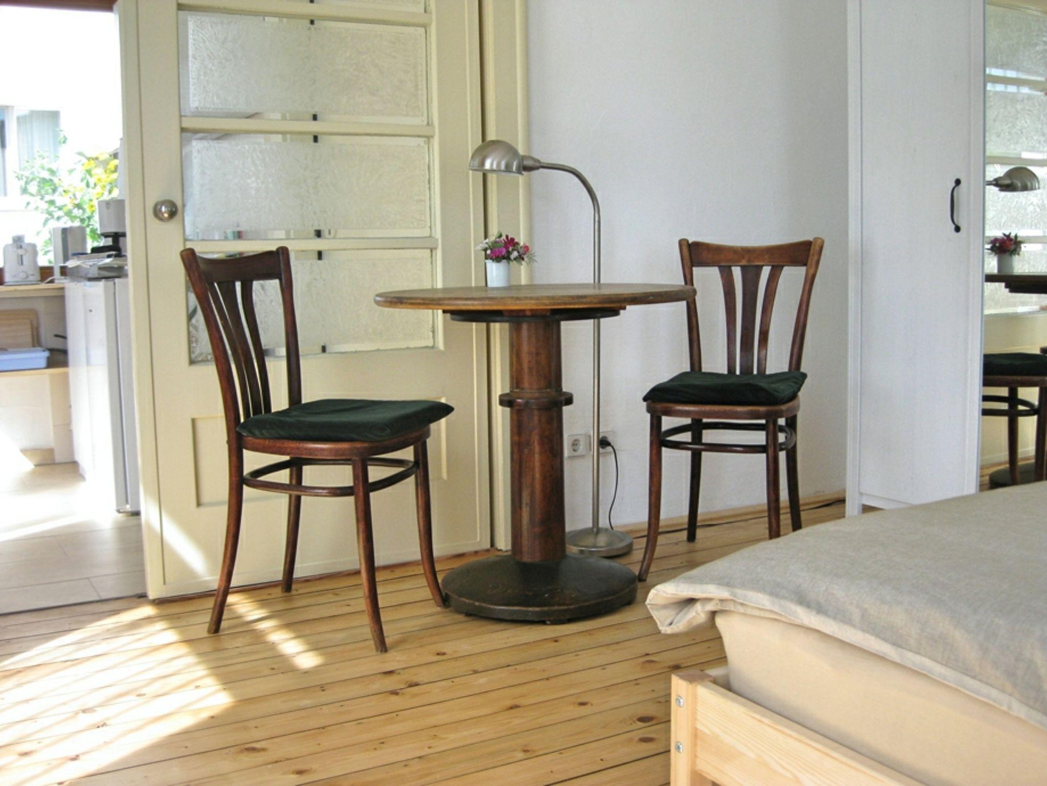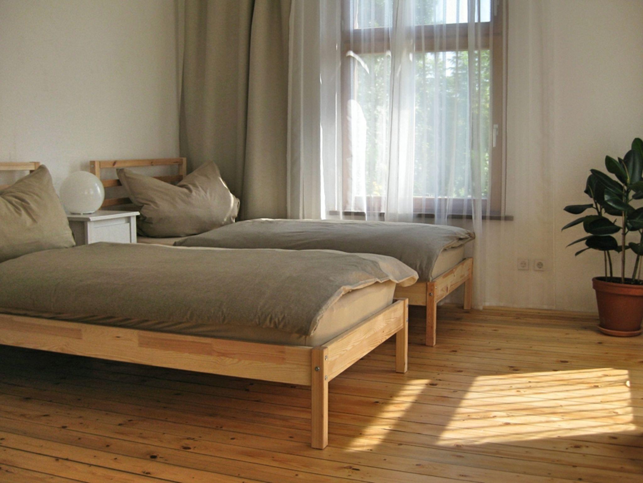 ruhiges, sonniges Gartenhaus, modern eingerichtet, Renovierung 2024, Nichtraucherwohnung, zwei Einzelbetten, die man zu einem Bett zusammenschieben könnte, Fliesen und Dielen