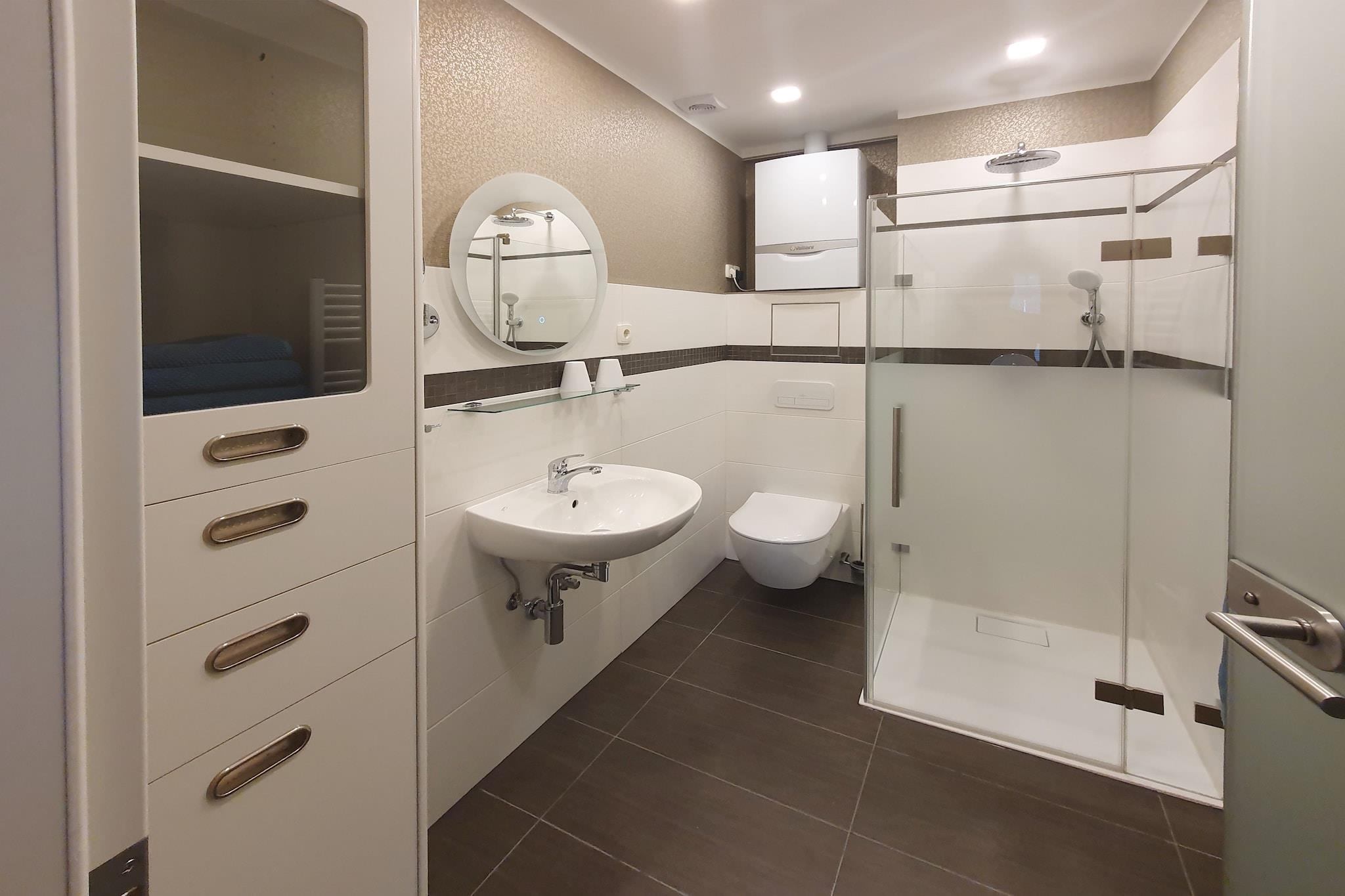 Nyrenoveret, smagfuldt indrettet sommerhus kun et stenkast fra Müggelsee på en skøn 1.200 kvm grund med udendørs pool og modne fyrretræer. Den rolige beliggenhed i udkanten af byen giver dig mulighed for at undslippe storbyens typiske stress og jag, mens du stadig har gode transportforbindelser til centrum af Berlin. Bydelen Rahnsdorf er den østligste af Berlin og blev oprindeligt grundlagt som en fiskerby mellem Müggelspree og Müggelsee. Højdepunkter inkluderer: Brug af udendørs pool i samråd med udlejer Sengelinned og håndklæder (første levering) El og vand Wi-Fi Aktiviteter i nærheden: Besøg den gamle kirke i Rahnsdorf eller tag en tur til klatreskoven nær Erkner. Et offentligt badeområde med sauna, surfing og sejlerskole ligger kun 1,8 km væk. Sørg for at udforske seværdighederne såsom Kurfürstendamm, TV-tårnet eller Tiergarten på dine ture til Berlins centrum. Du kan selvfølgelig også deltage i forskellige byture. Som afrunding på aftenen byder Berlin på en bred vifte af underholdning såsom musicals, teater og natteliv.