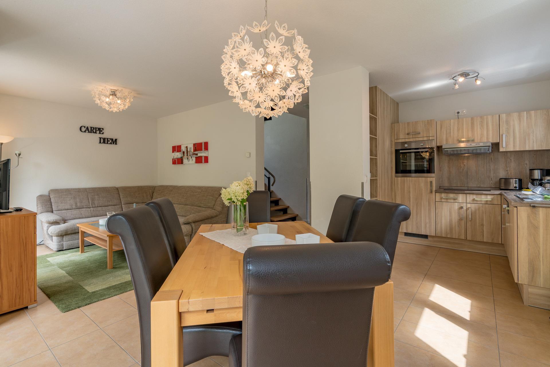 Die offene, voll ausgestattete Küche, lädt zum gemeinsamen Kochen ein.
