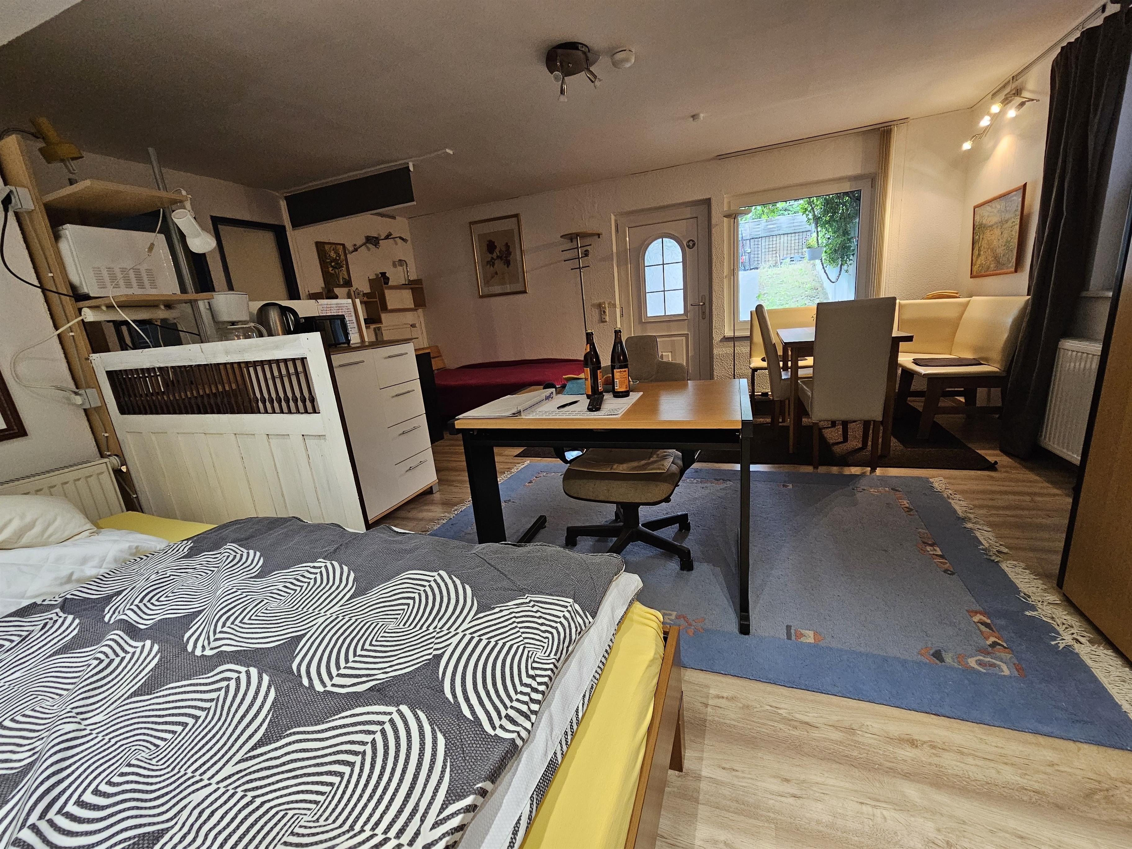 Es ist gut ausgestattet und es handelt sich um ein sehr ruhiges, sehr großes, helles Zimmer, aber im Souterrain, Waldlage direkt am Europa-Radweg zwischen großem und kleinem Müggelsee. Je nach Bedarf stellen wir die Betten/ Einrichtungsgegenstände innerhalb des Apartments auch um, um die gewünschte Privatsphäre anzupassen…