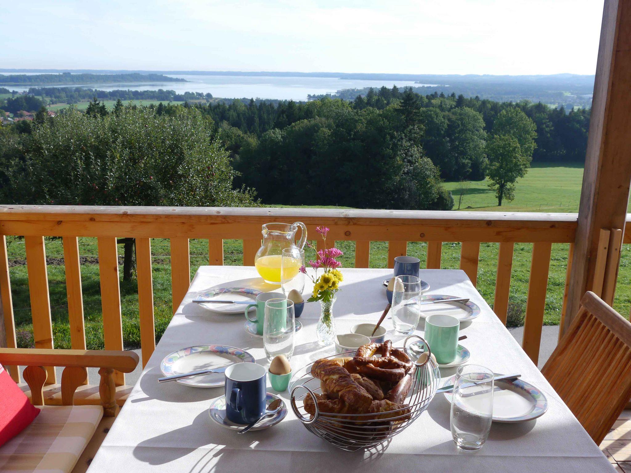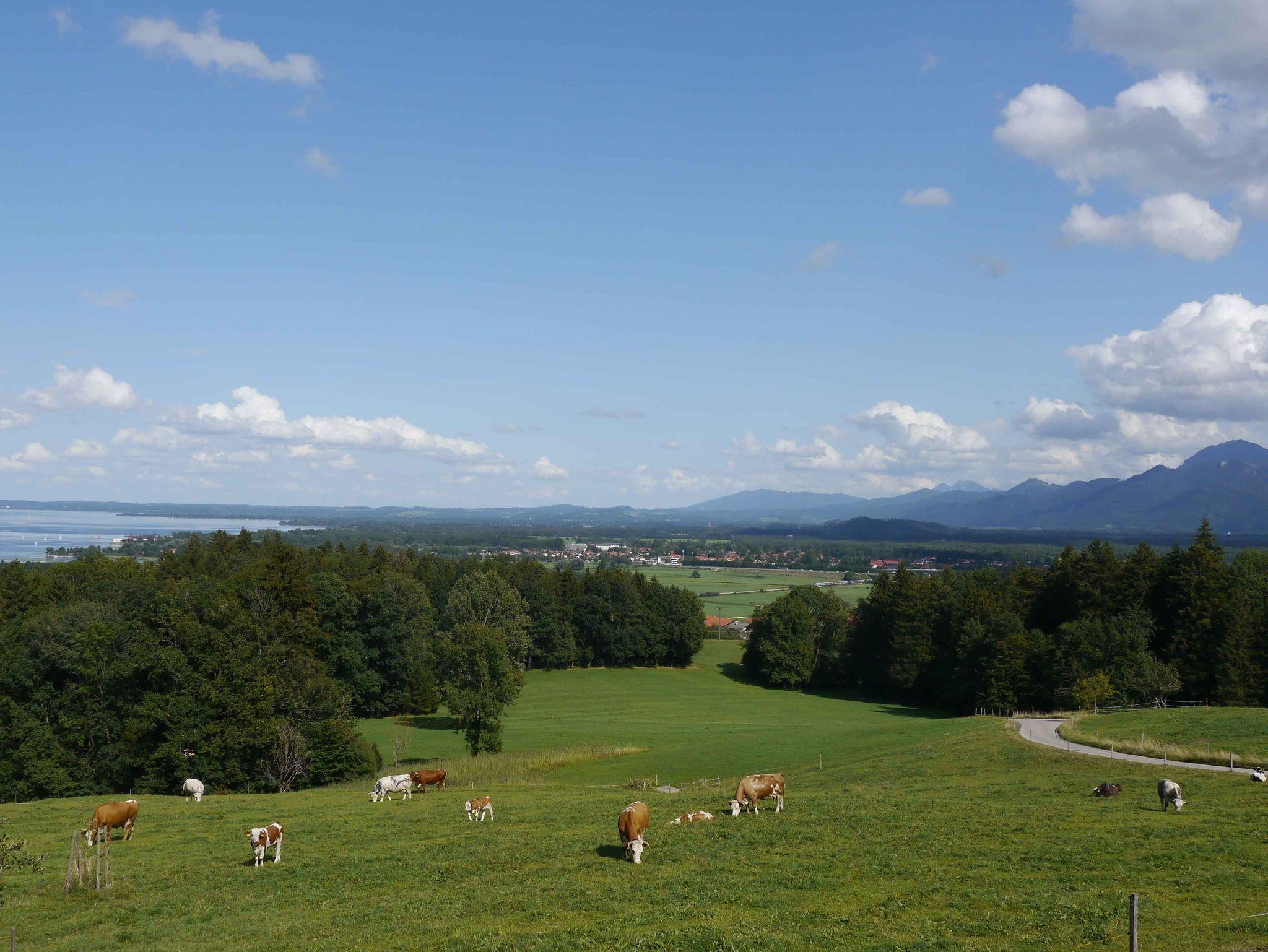 Sie planen einen ländlichen Urlaub im schönen Chiemgau? Sie wollen einfach entspannen, abschalten und die Ruhe genießen? Dann sind Sie bei uns genau richtig!Wir bieten Ihnen einen unvergesslichen Urlaub auf unserem familienfreundlichen Bauernhof mit Mutterkuhhaltung und zahlreichen Kleintieren. Bei uns erfahren vor allem die Kleinsten, wo beispielsweise die Milch und das Frühstücksei am Morgen herkommt und auch den Umgang mit den Tieren. Unser Anwesen ist in einer idyllischen etwas abgelegenen Ortschaft, dennoch ist man auf kurzem Weg am Chiemsee oder in den herrlichen Chiemgauer Alpen. Unsere Gegend bietet in dieser Hinsicht viele Ausflugsziele. Unsere Ferienwohnungen bieten einen traumhaften Blick auf den Chiemsee und das Alpenpanorama. Sie befinden sich im Obergeschoss des Nebengebäudes und sind über die Außentreppe mit nur fünf Stufen bequem zu erreichen. Vor allem der Ostbalkon mit Seeblick ist ein idealer Ort zu entspannen und genießen. Langeweile wird es bei Ihren Kindern nicht geben. Wir haben ausreichend Spielutensilien und durch unsere ruhige Umgebung viel Spielraum zum toben. Die Wohnung ist mit Liebe zum Detail modern eingerichtet und besitzt u.a. ein großräumiges Badezimmer. Ein gelungener Urlaubstag kann auf der Westterrasse in der Abendsonne gemütlich ausgeklungen werden. Wir freuen und Sie in unserer Ferienwohung Willkommen zu heißen!