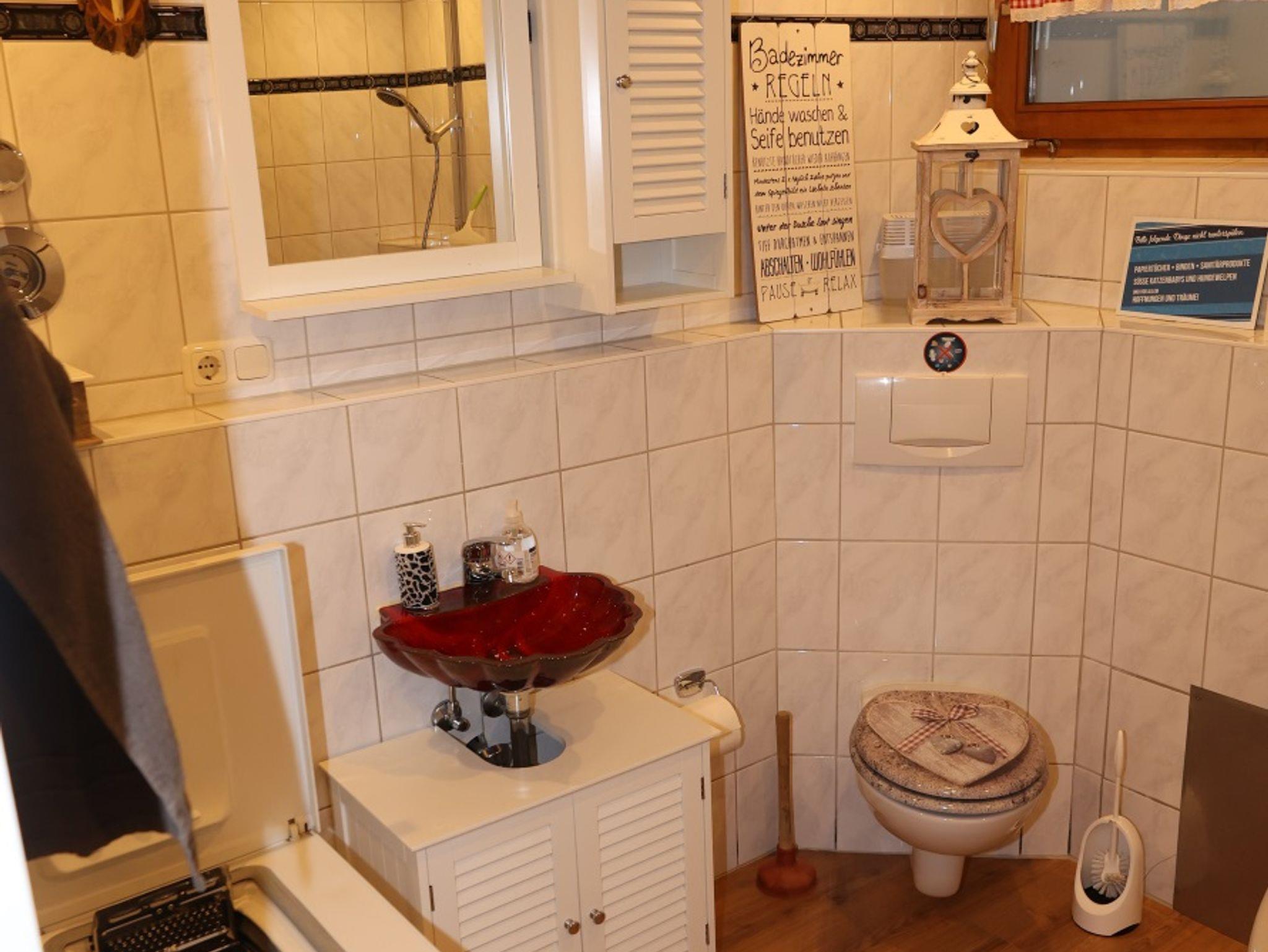 Die Ferienwohnung im urigen Landhaustil in ruhiger, idyllischer und bevorzugter Wohngegend zwischen Chiemsee und Bergen bietet Platz für 2 Personen mit oder ohne Hund liegt im Untergeschoss und ist mit Lichtschächten versehen über die eingeschränkt Tageslicht einfliessen kann. Im Sommer angenehm kühlend und im Winter angenehm wärmend durch die Zentralheizung. Die Wohnküche verfügt über einen Kühlschrank mit Gefriereinheit,Ceranfeld,Spülmaschine und einem Essbereich. Das Wohn-Schlafzimmer verfügt über ein Doppelbett,Kleiderschrank,SatTV,DVD u.WLAN. Sowie über ein Bad das mit WC,Badewanne/Dusche,Waschmaschine und kostenlosen Erstausstattungspflegeprodukten ausgestattet ist.