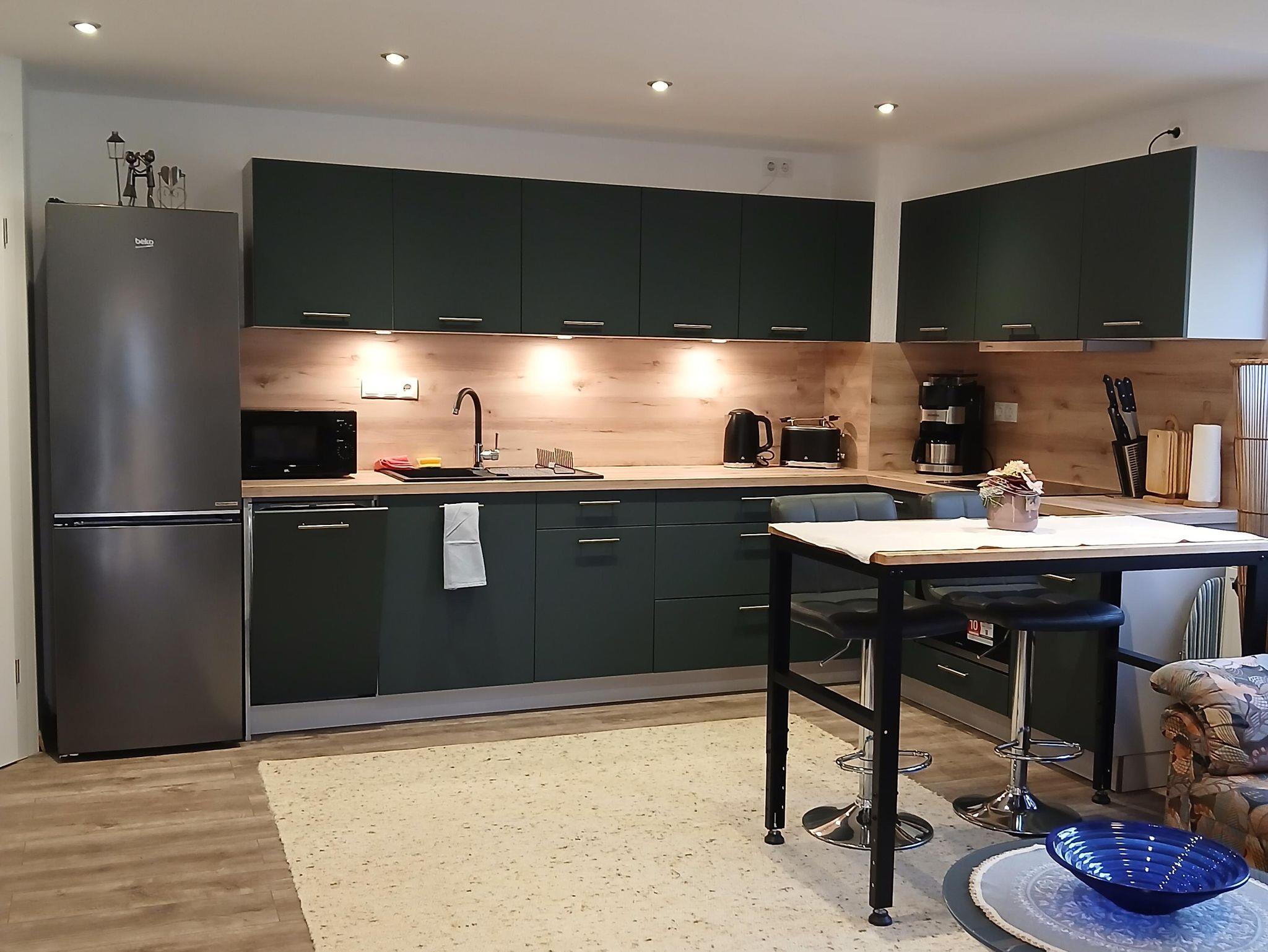 Die neue, komplett ausgestattet Küche in L-Form ist ein Highlight für Selbstversorger.