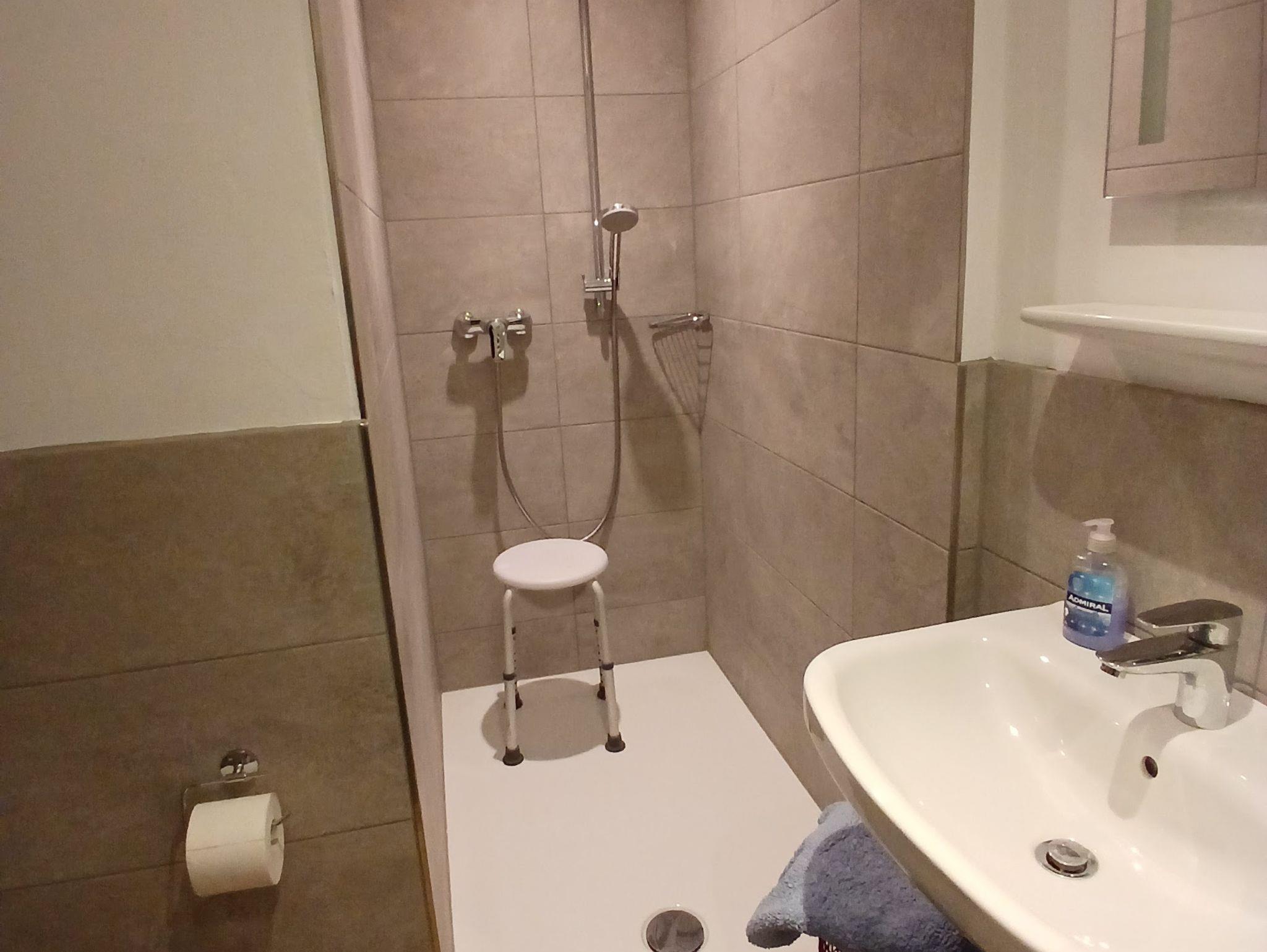 Im Badezimmer befindet sich eine begehbare Dusche, Handtuchheizung sowie Waschmaschine.