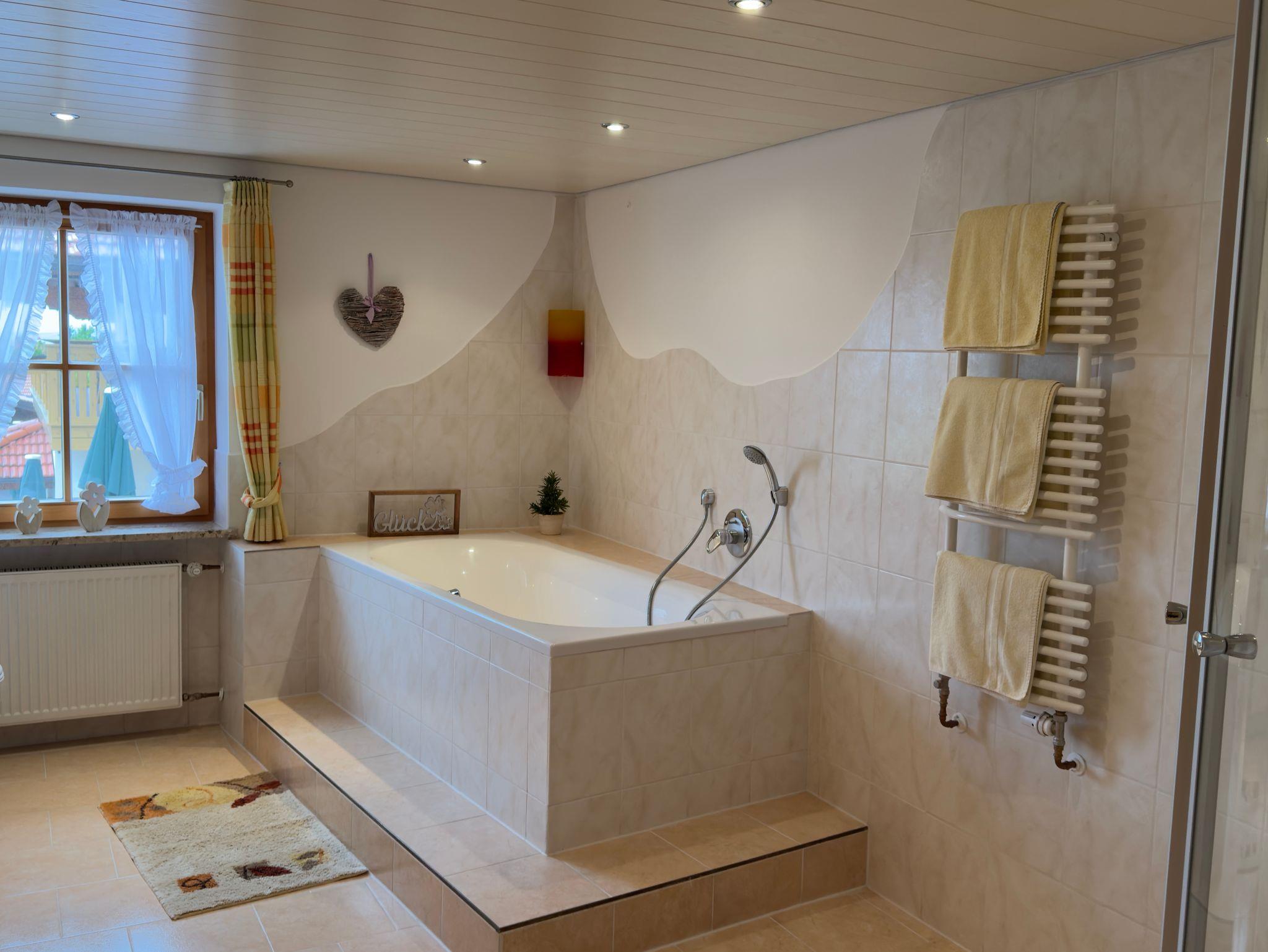 * ein großzügiges Badezimmer mit Badewanne